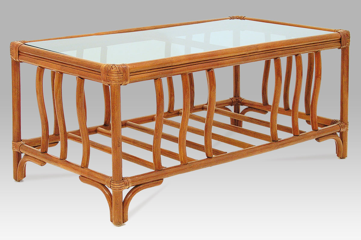 Ratanový konferenční stolek, moření tmavý med. BEZ SKLA.