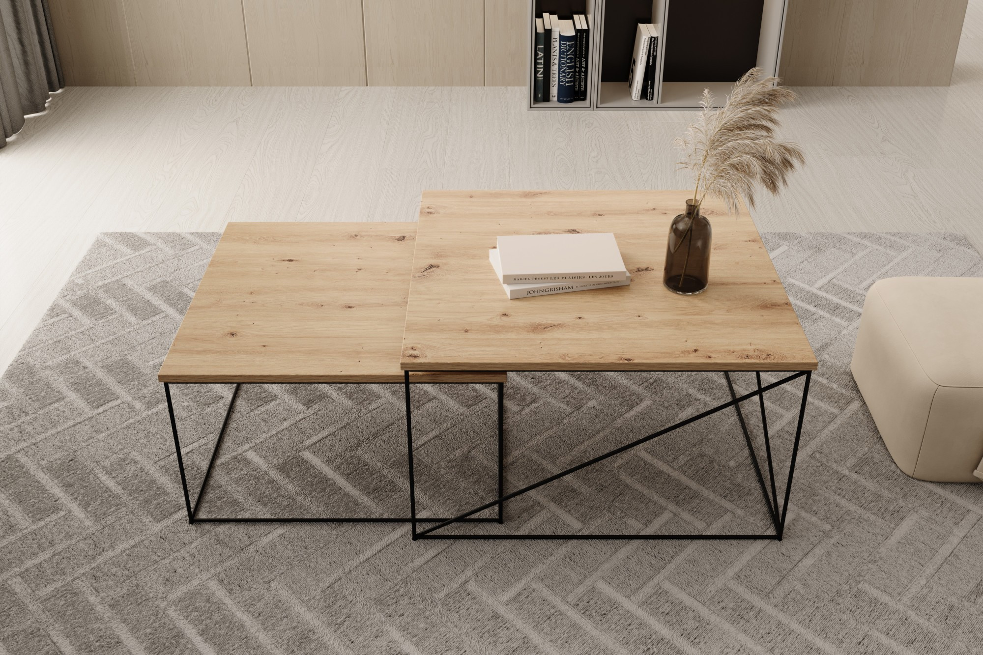 Konferenční stolek 2v1 Licco je stylový a funkční nábytek, který jistě dodá eleganci každému interiéru. Jeho moderní, minimalistický design se skvěle hodí k různým stylům interiéru a vysoká kvalita materiálů zaručuje trvanlivost a pevnost. Čtvercová deska stolu nabízí dostatek místa na kávu, knihy, dekorace a další předměty, zatímco nohy z drátu dodávají stolku lehkost a moderní charakter. Drát, ze kterého jsou vyrobeny nohy, je odolný a stabilní, a zároveň dodává stolku jemný industriální nádech. Stolek lze snadno přeměnit nebo využít v různých konfiguracích, což ho činí velmi praktickým. Je možné jej rozložit na dva samostatné stolky, což poskytuje více možností uspořádání.