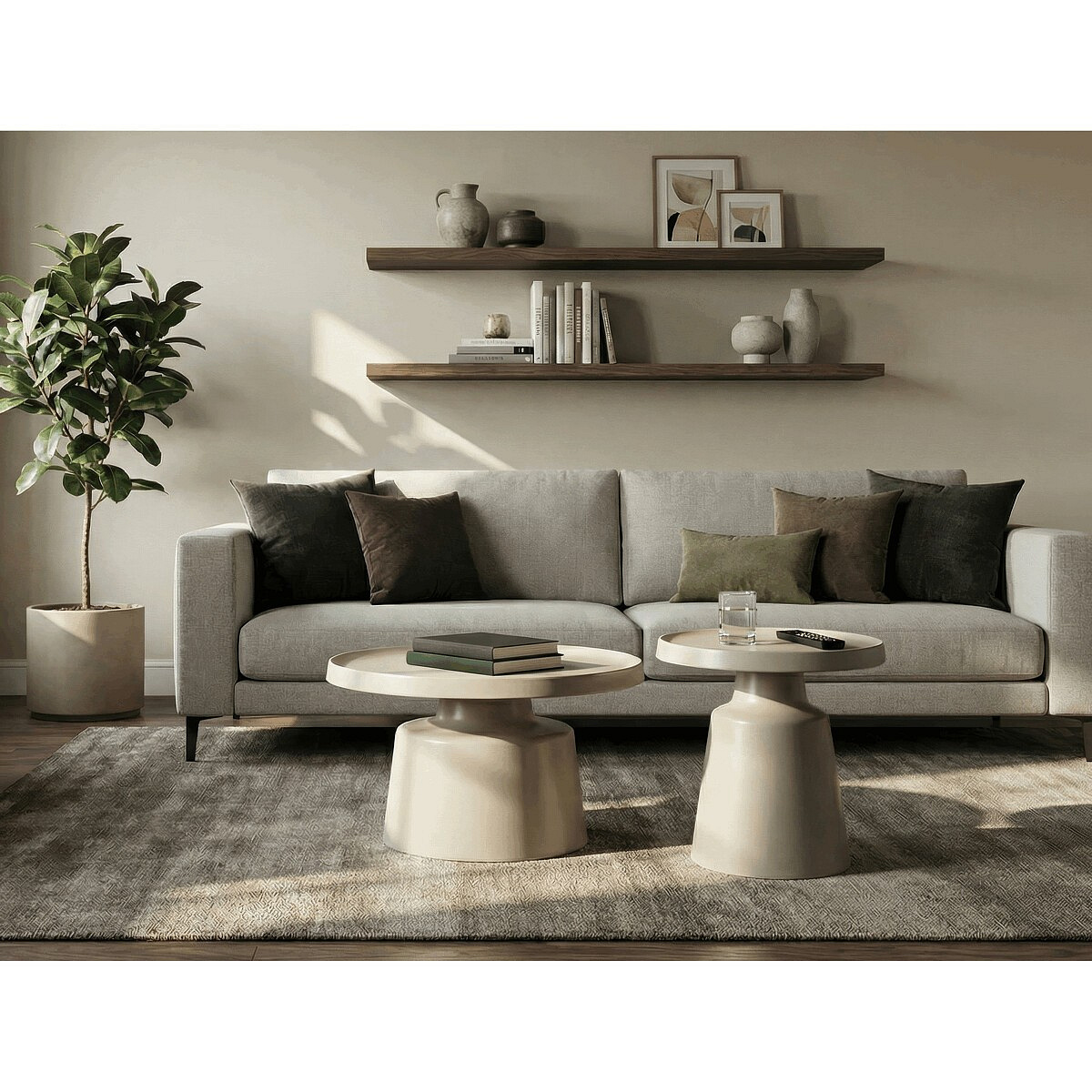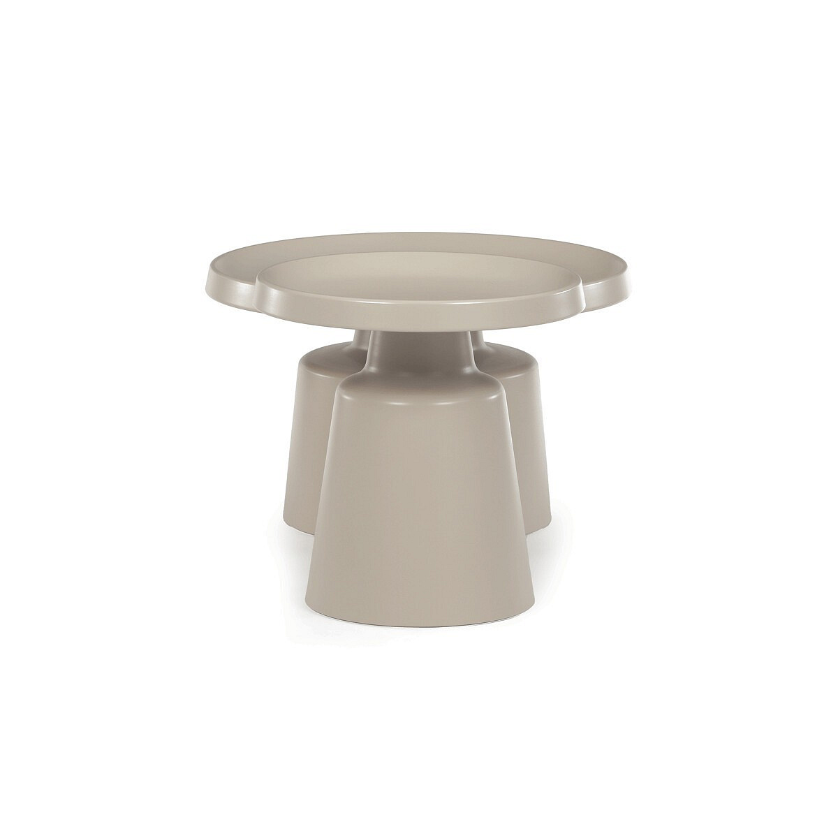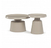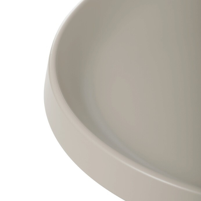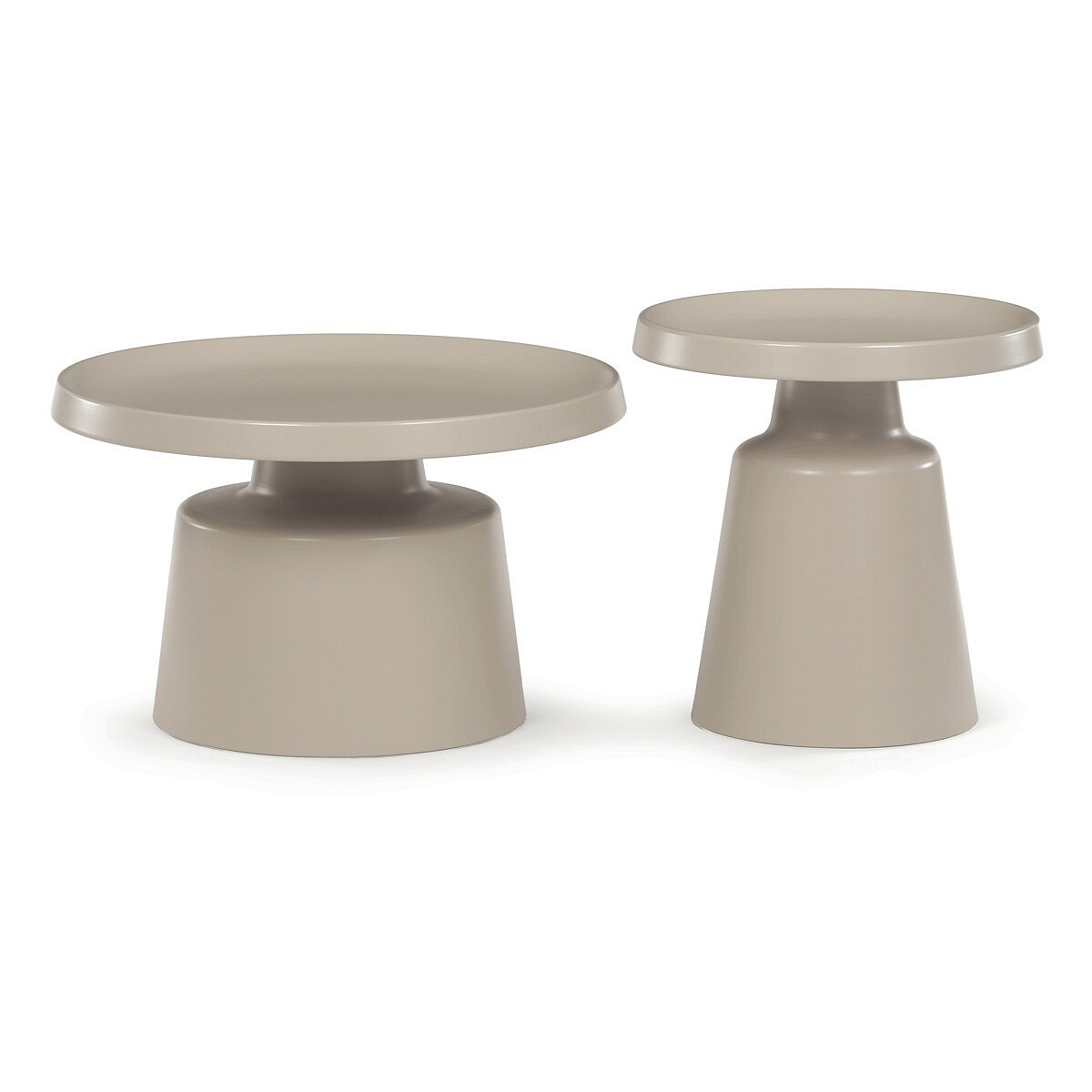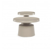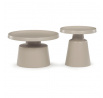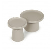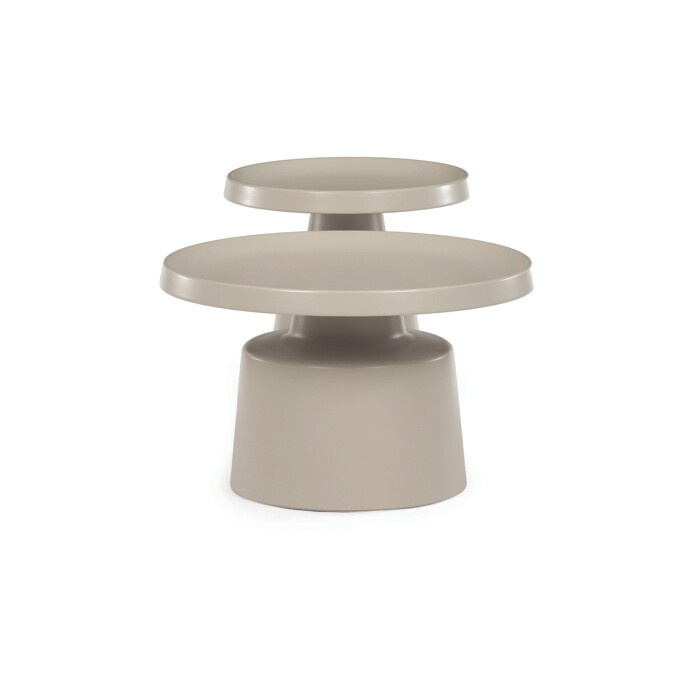 Sada dvou konferenčních stolů v béžovém matném provedení nabízí kombinaci funkčnosti a moderního designu. Obě desky i nohy jsou vyrobeny z kovu, což zajišťuje stabilitu a pevnost stolů. Stolky mají dekorativní hranu, která dodává jemný designový detail, a jejich povrch je snadno udržovatelný a odolný vůči běžnému opotřebení. Větší stůl má průměr 68,5 cm a výšku 43 cm, menší stůl průměr 49 cm a výšku 50,5 cm, což umožňuje variabilní uspořádání v prostoru. Díky svému neutrálnímu odstínu béžové barvy se hodí do různých interiérů.