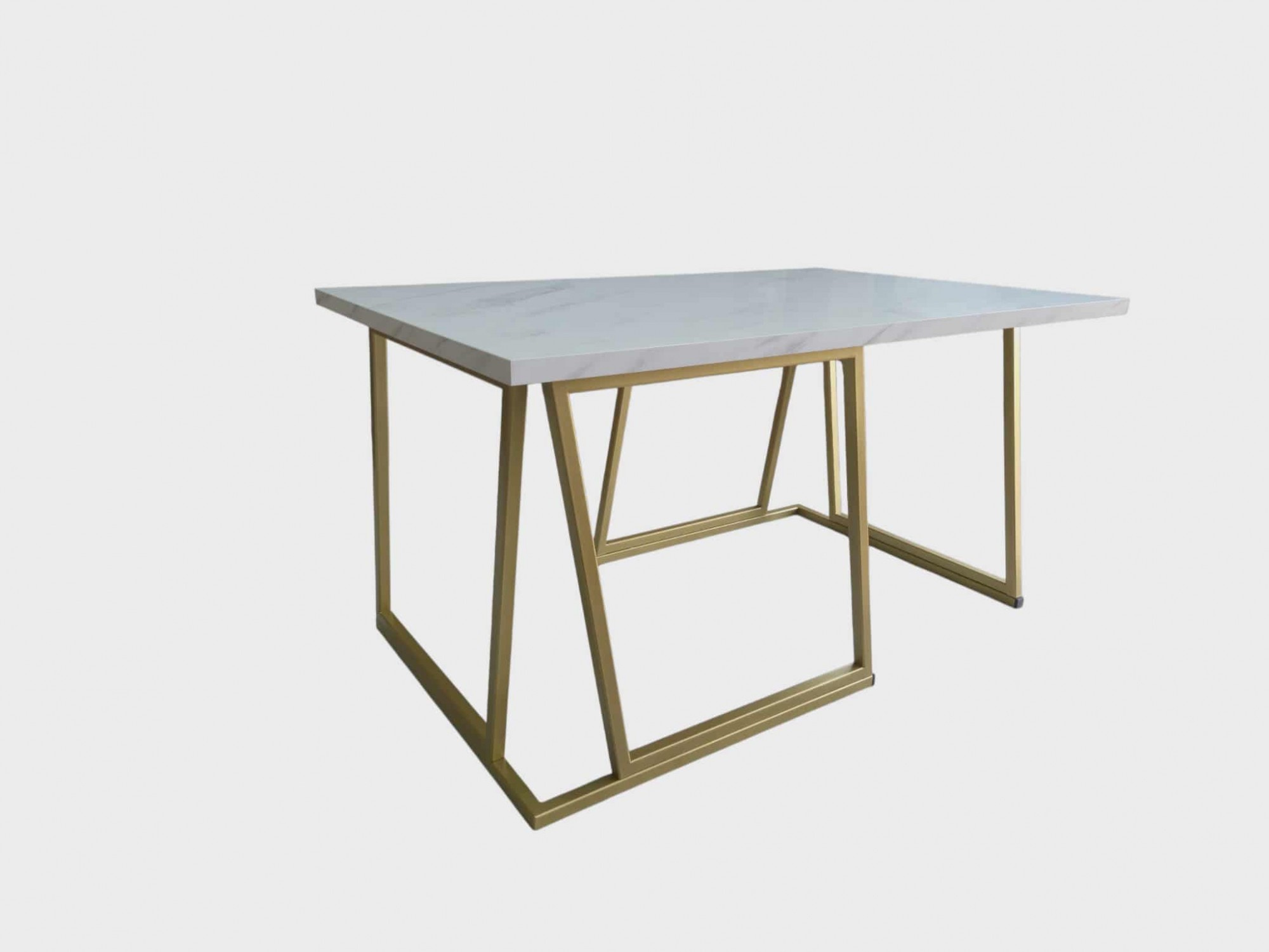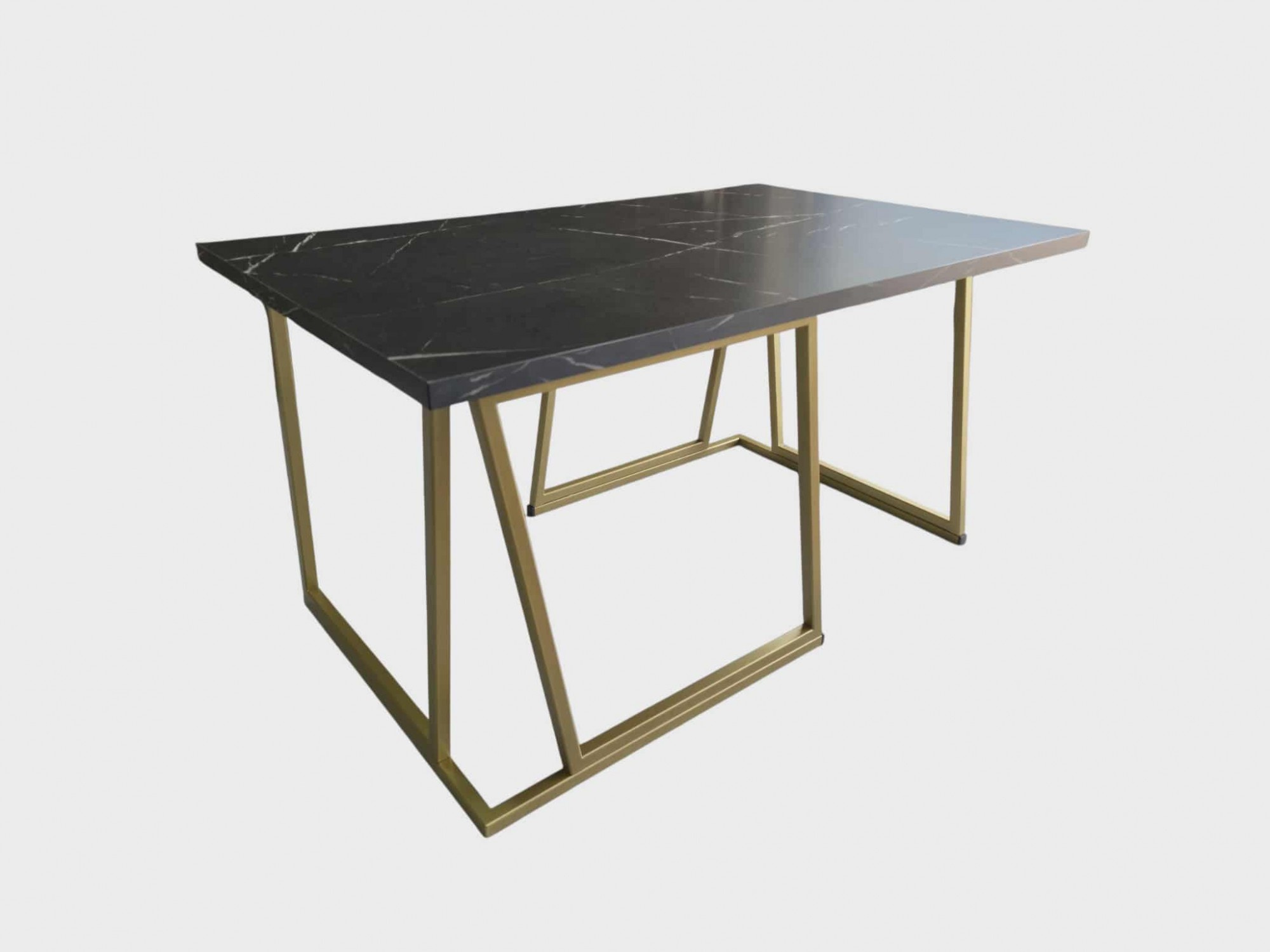 Konferenční stolek je vyroben z vysoce kvalitních materiálů, které zaručují jeho dlouhou životnost a odolnost. Pevná konstrukce a stabilní zlatá základna zajišťují, že stolek bude spolehlivě sloužit po mnoho let. Povrch desky je odolný proti poškrábání a snadno se udržuje v čistotě, což oceníte při každodenním používání.