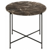 Konferenční stolek Avila je malý, elegantní kus nábytku ideální do obývacího pokoje ve stylu glamour. Má kulatou desku z hnědého mramoru a práškově lakovanou základnu složenou ze čtyř nohou v černé barvě. Nohy stolku jsou zajištěny plastovými krytkami a dodatečně spojeny dvěma křížícími se prvky. Celkově působí velmi lehce a jemně, avšak díky vhodné konstrukci je stolek plně stabilní. Díky elegantnímu designu se stolek Avila může úspěšně stát ozdobou vašeho interiéru. Počet kartonů: 1 Rozměry kartonů: 55,5x7x55,5cm Hmotnost kartonů: 10kg