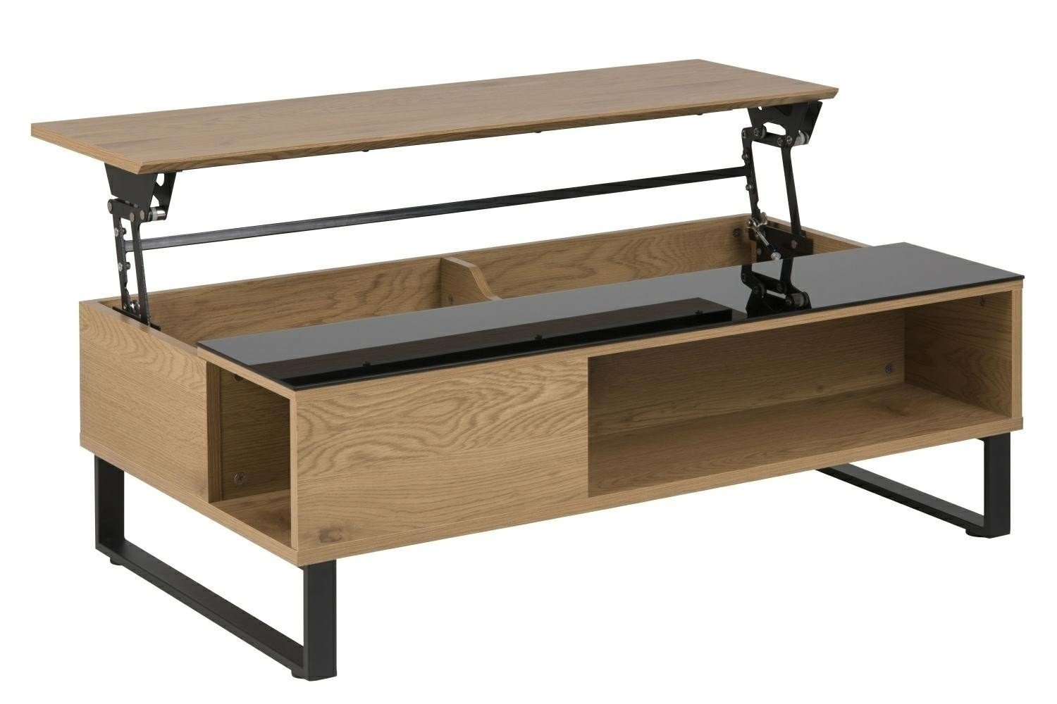 Konferenční stolek Azalea je funkční stolek pro moderní obývací pokoj. Stůl byl vyroben z překližky s dýhou v barvě divokého dubu. Polovina desky byla pokryta 5mm kouřovým sklem. Základnu stolku tvoří kovové matné nohy. Díky tomu, že byly natřeny práškově, jsou dokonale pokryty černým barvivem. Stolek je otevíratelný shora. Má dvě police a úložný prostor. Výška: 35/55 Šířka: 110 Hloubka: 60