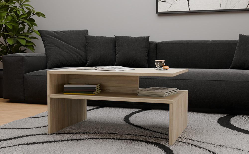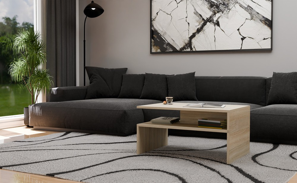 Konferenční stolek Beata, je cenově dostupný a atraktivní stolek, který je vyrobený z lamina ve velmi oblíbeném a moderním designu. Stolek je dostatečně velký na vše co si budete potřebovat odložit. Hrnek s kávou nebo čajem, talíř, knihu, telefon, notebook, nebo klidně i unavené nohy po celodenním maratonu. Stolek má také praktickou spodní polici, kde můžete umístit vše ostatní, co Vám zrovna bude na stolku překážet, ale potřebujete mít po ruce. Můžou to být např.ovladače, nebo krabice s kapesníky atd. Stolek je dodávaný v demontu. Součástí balení je montážní plánek včetně všech potřebných spojovacích materiálů.