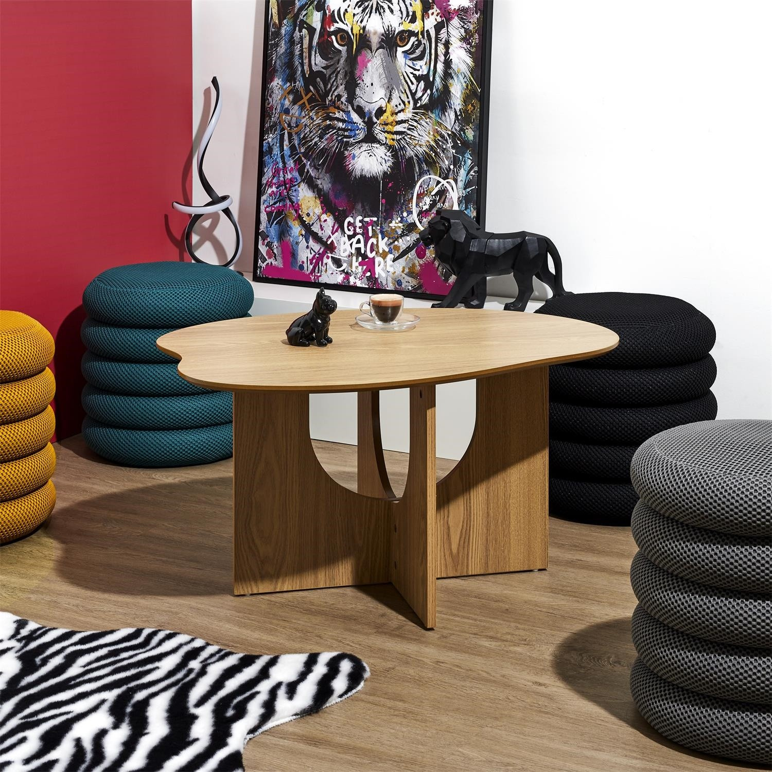 Stolek Calypso je nábytek ve stylu japandi, který se vyznačuje neobvyklými tvary. Stolek vyrobený z MDF desky s dýhou imitující dřevo. Stolek vyžaduje montáž Max. zatížení 40 kg.