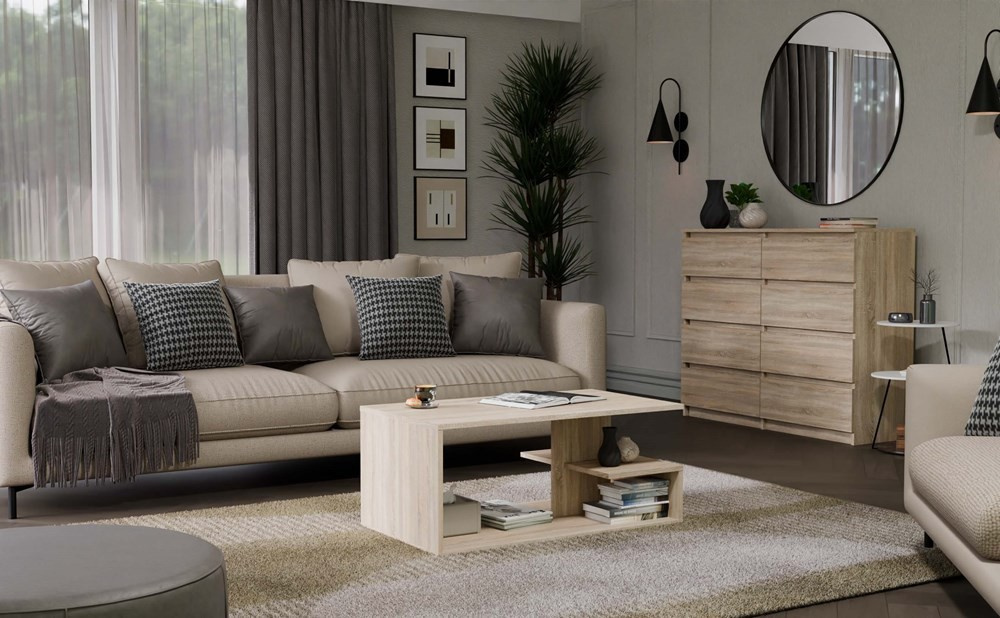 Konferenční stolek Daltis ve velmi oblíbeném minimalistickém designu podtrhne moderní charakter každého obývacího pokoje či kanceláře. Stolek s praktickou odkládací policí je vyrobený ze snadno udržovatelného lamina.