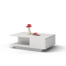 Konferenční stolek Derik v minimalistickém designu podtrhne moderní charakter každého obývacího pokoje či kanceláře. Je vyrobený ze snadno udržovatelného lamina. Stolek nabízí praktický úložný prostor s dvířky TIP-ON bez úchytek, které lze snadno otevřít lehkým stiskem. Dveře se otevírají směrem dolů do polohy, která je pro uživatele pohodlná. Chcete-li je zavřít, stačí lehce stisknout přední část.