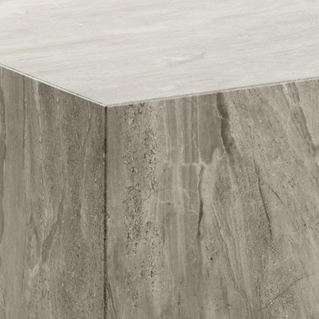 Kamenný vzhled dodává stolku moderní charakter, zatímco subtilní soklová základna mu propůjčuje architektonický ráz. Stolek nabízí dostatek místa pro hromadu knih nebo může sloužit jako místo pro podávání nápojů a občerstvení během setkání. Navrženo designérem Lasse Cha Pedersenem. Stolek vyrobený z MDF desky ozdobený papírovou dýhou imitující šedý mramor. Hmotnost stolku: 21,8 kg Max. zatížení stolku: 20 kg