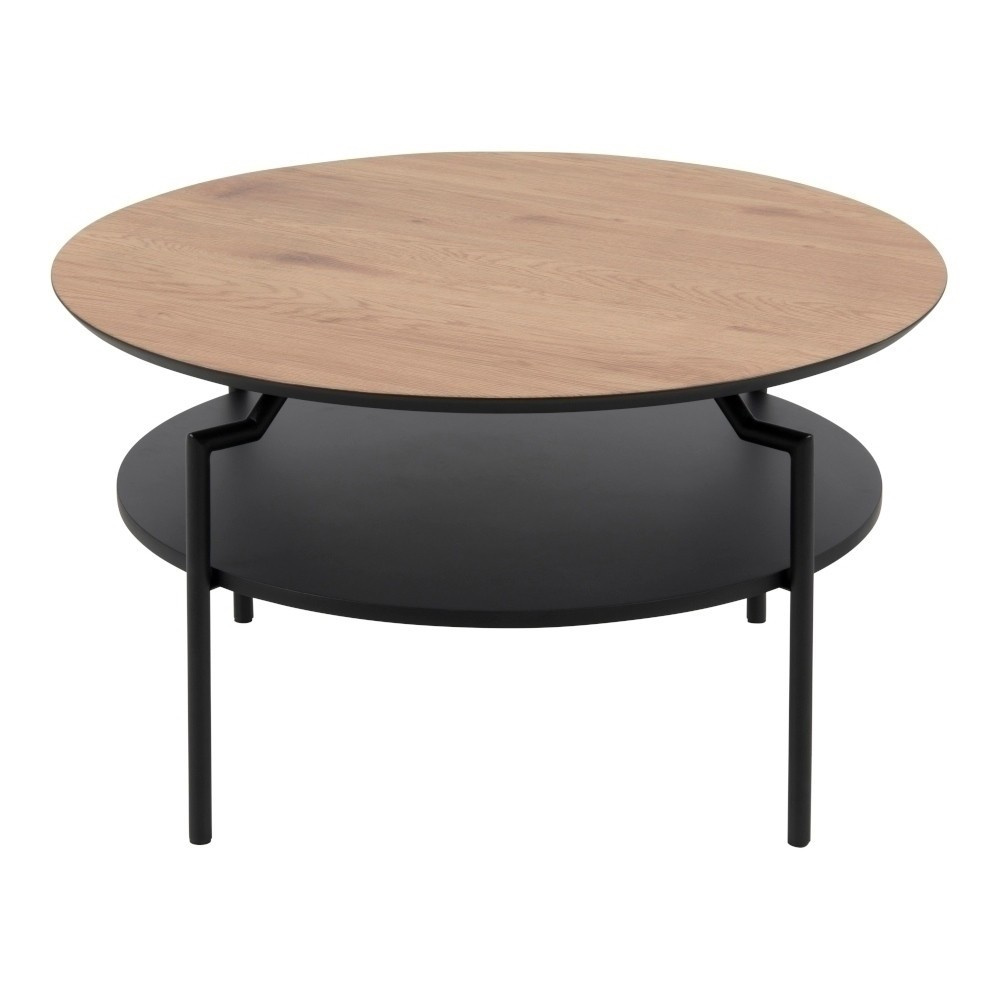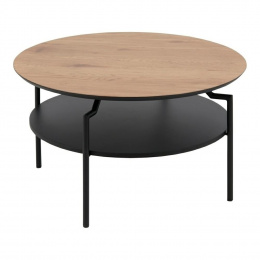 Stolek Goldington byl udržován v industriálním stylu. Deska stolu je z MDF desky, která byla ozdobena dýhou imitující přírodní dub. Zajímavá kombinace motivu dřeva s černým základem je hitem tohoto roku. Základna stolku byla vyrobena z kovu natřeného práškovou barvou na černo. Za pozornost stojí zajímavý tvar základny stolu. Nohy byly jemně ohnuté těsně pod dřevěnou deskou. Stolek má další černou poličku. Hmotnost: 11,75 kg. Rozměry kartonu: 9cm x 85,5cm x 85,5cm