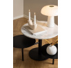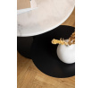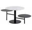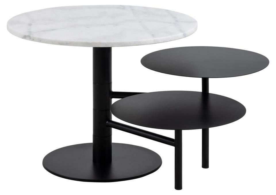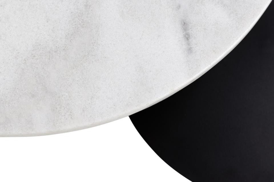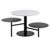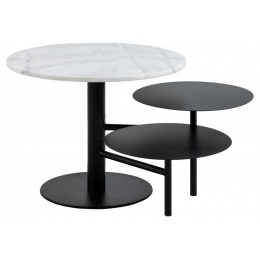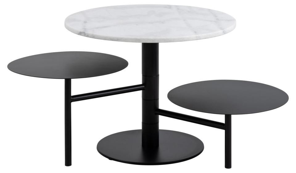 Kulatý konferenční stolek Lahti, deska z bílého leštěného mramoru Guangxi a matné černé oceli s práškovým nástřikem, základna z matné černé oceli s práškovým nástřikem, s otočným mechanismem. Navržen s ohledem na flexibilitu, 3-úrovňový stolek se vyznačuje 2 otočnými rameny, která umožňují individuální nastavení desky. Uprostřed se nachází bílá mramorová deska, kolem které každé rameno drží štíhlou černou desku nastavenou v jiné výšce. Spojení bílého mramoru a černé oceli vytváří okouzlující ústřední prvek moderního obývacího pokoje. Rozměry desek O60x45;O40x35;O40x25. Vyžaduje montáž.
