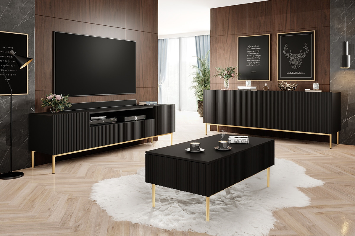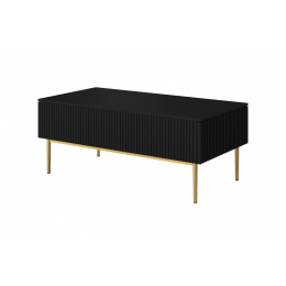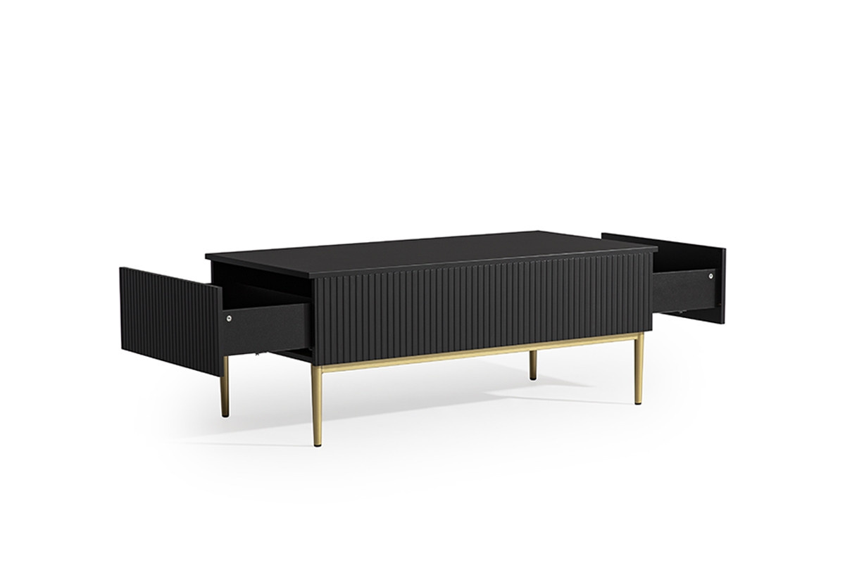 Konferenční stolek Nicole se zásuvkami na kovových nohách - černý mat / zlaté nohy, šířka: 120, výška: 48, hloubka: 60, výška nohou: 23