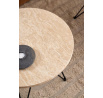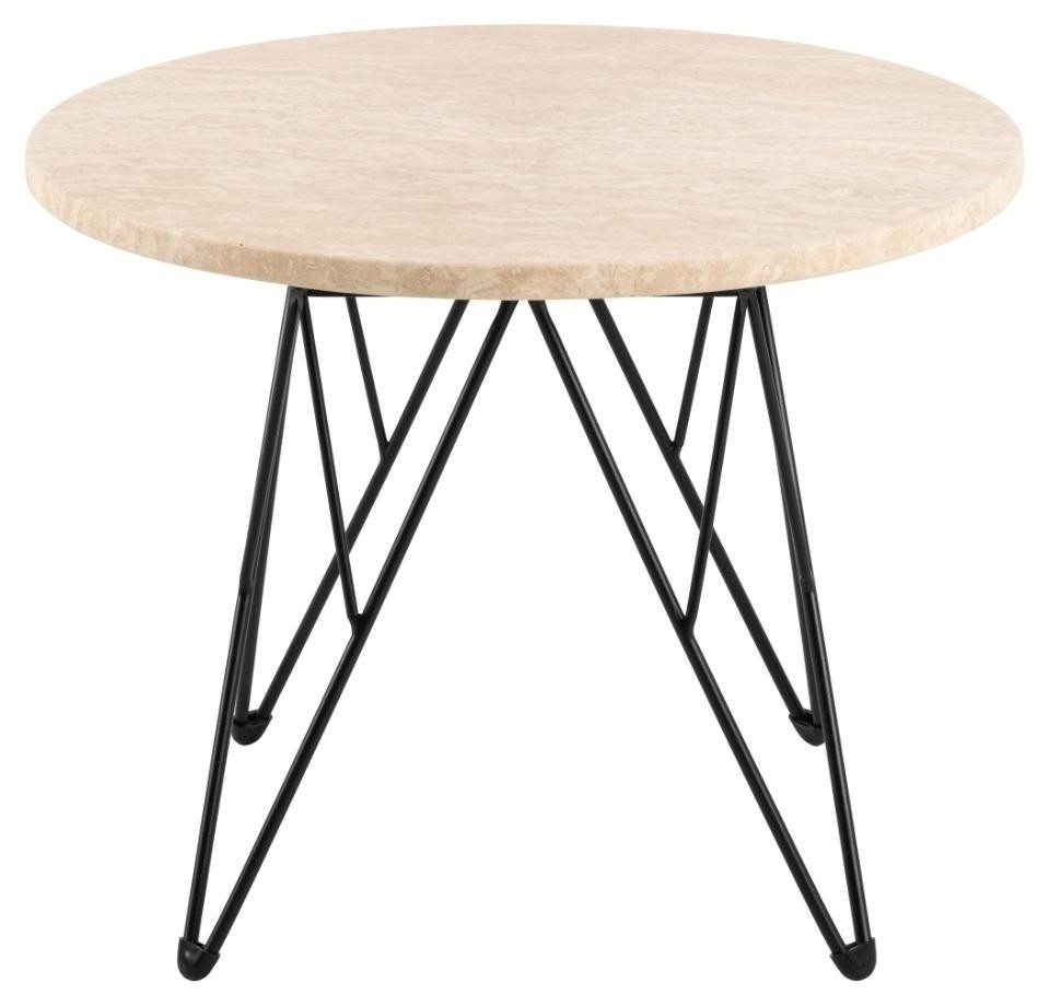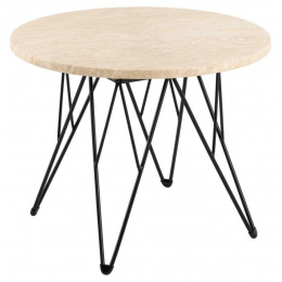 Kulatý boční stolek Prunus, deska z matného travertinu lakovaného na béžovo, základna z drátu z oceli práškově lakované na černo. Ten boční stolek se zalíbí jak minimalistům, tak maximalistům. Vyznačuje se efektní deskou z travertinu, podepřenou chromovanou drátěnou základnou. Vyvážený kontrast mezi proporcemi dodává projektu lehký půvab. Snadno se přizpůsobí každému stylu interiéru. Hmotnost stolu: 14,4 kg. Max. zatížení 20 kg Rozměry kartonů: 14x66x77cm a 59,5x31x11cm
