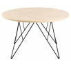 Kulatý konferenční stolek Prunus, deska z matného travertinu lakovaného na béžovo, drátěná základna z matné, černé, hrubé oceli lakované práškovou barvou. Tento konferenční stolek se zalíbí jak minimalistům, tak maximalistům. Charakterizuje se efektní deskou z travertinu, která je podepřena černou drátěnou základnou. Vyvážený kontrast mezi proporcemi dodává projektu lehký půvab. Snadno se přizpůsobí každému stylu interiéru. Hmotnost stolku 30 kg. Rozměry kartonů: 14x87x100cm a 66x43x14,8cm