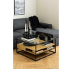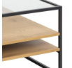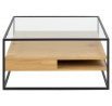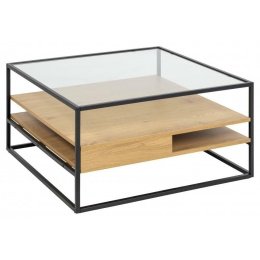 Čtvercový konferenční stolek Randolf, deska z průhledného tvrzeného skla, 2 police z matné dýhy v barvě divokého dubu, základna z matné, černé, hrubé oceli lakované práškovou barvou. Díky charakteristickému kovovému rámu ve tvaru krychle se tento konferenční stolek hodí do každého moderního domova. Průhledná skleněná deska mu dodává lehkost. Díky 2 policím s dýhou v designu divokého dubu, stolek nabízí stylové místo k uložení. Užij si moderní atmosféru při popíjení kávy - nebo čaje. Vyžaduje montáž Rozměry kartonu: 90x87x9,5 cm. Hmotnost: 34 kg