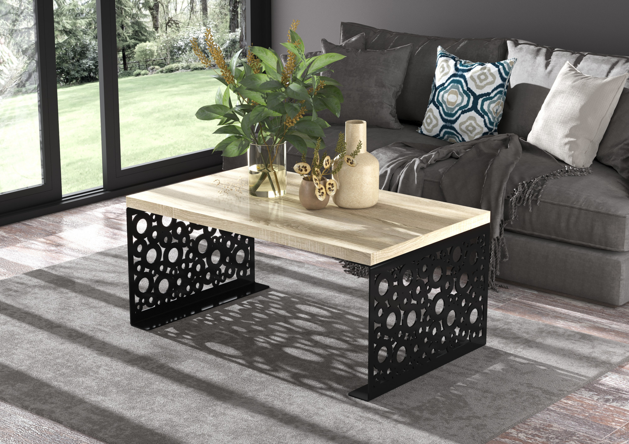 Konferenční stolek RINA 100x60 Černý+Sonoma