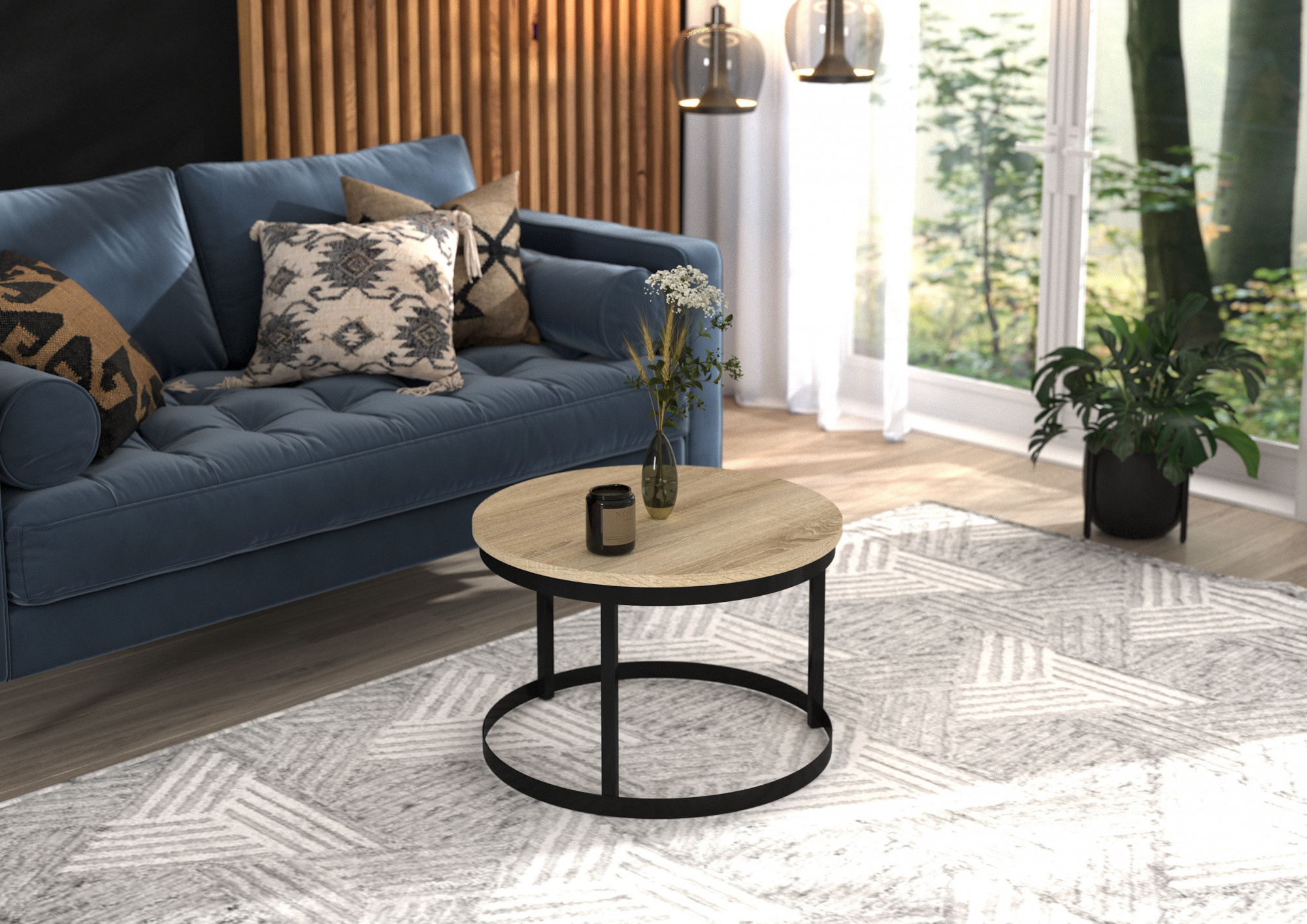 Konferenční stolek RINEN Černý+Sonoma