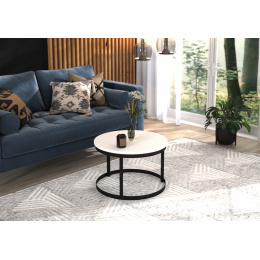 Konferenční stolek RINEN s rámem z oceli a deskou z laminované desky. RINEN je ideální místo k odpočinku u kávy. Jednoduchý a zároveň neobyčejný design, který se hodí do každého interiéru.