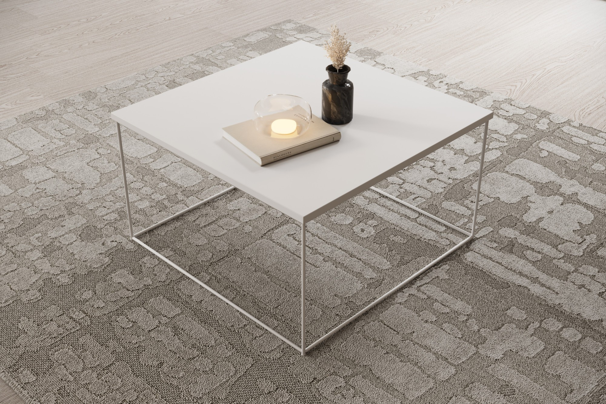 Konferenční stolek Roni je elegantní a moderní nábytek, který se dokonale hodí do každého současného interiéru. Má čtvercovou desku vyrobenou z odolné laminované desky, která je odolná proti poškrábání a snadno se udržuje v čistotě. Laminát může mít různé povrchové úpravy, jako je imitace dřeva, betonu nebo jednobarevný vzhled, což umožňuje přizpůsobení stolku různým stylům aranžmá. Základnu stolku tvoří unikátní noha vyrobená z ocelového drátu, která dodává nábytku lehkost a industriální charakter. Drát je precizně formován do geometrického vzoru, což vytváří zajímavou a zároveň stabilní konstrukci. Kovová noha může být dokončena v matné černé, bílé nebo jiné barvě, což dále zdůrazňuje moderní design stolku. Konferenční stolek Roni je nejen funkční, ale i estetický doplněk do obývacího pokoje, který se skvěle hodí do prostor ve skandinávském, loftovém nebo minimalistickém stylu. Díky svému univerzálnímu designu se Roni stane centrálním bodem každého interiéru.