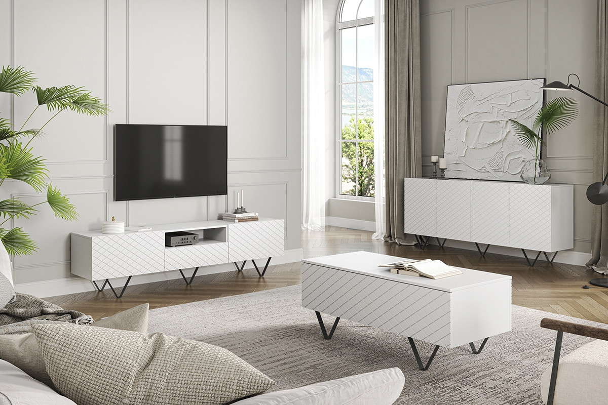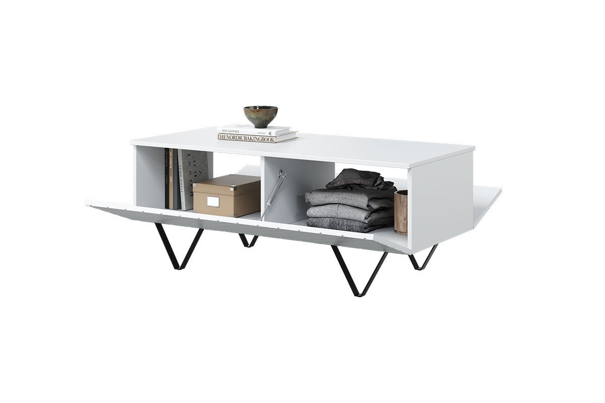 Konferenční stolek Scalia 120 2K s odkládacím prostorem - bílý mat / černé nohy, šířka: 120, výška: 48, hloubka: 55, výška nohou: 17