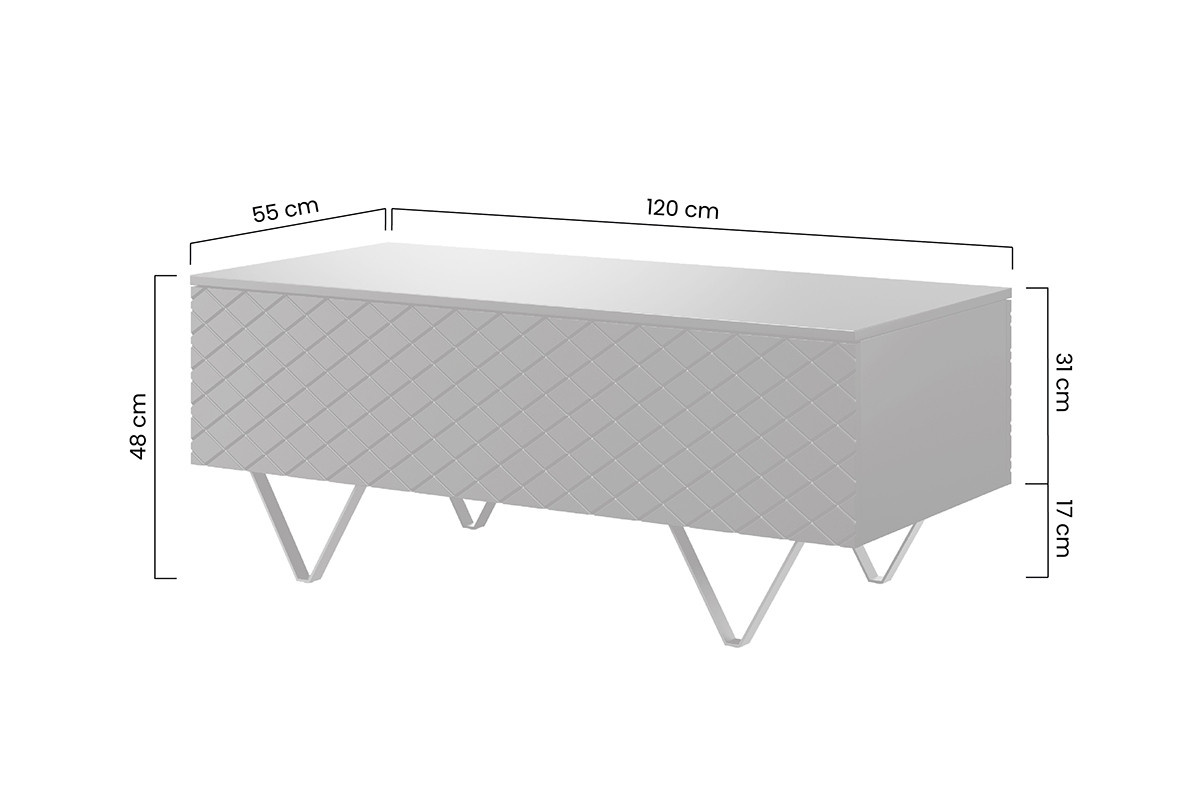 Konferenční stolek Scalia 120 2K s odkládací přihrádkou - labradorský mat / černé nohy, šířka: 120, výška: 48, hloubka: 55, výška nohou: 17