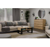 Konferenční stolek Sava v Loft stylu podtrhne moderní charakter každého obývacího pokoje, kanceláře i haly. Stolek s praktickými odkládacími policemi je vyroben z dvojitě laminované desky se zvýšenou tvrdostí (zakončené ABS), díky čemuž je povrch nábytku odolnější proti poškrábání.