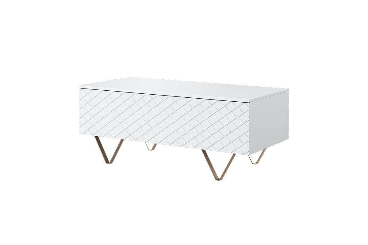 Konferenční stolek Scalia 120 2K s odkládacím prostorem - bílý mat / zlaté nohy, šířka: 120, výška: 48, hloubka: 55, výška nohou: 17