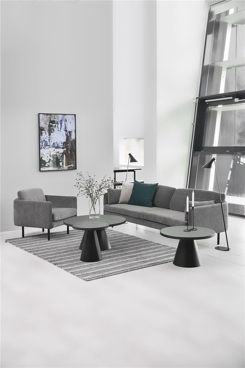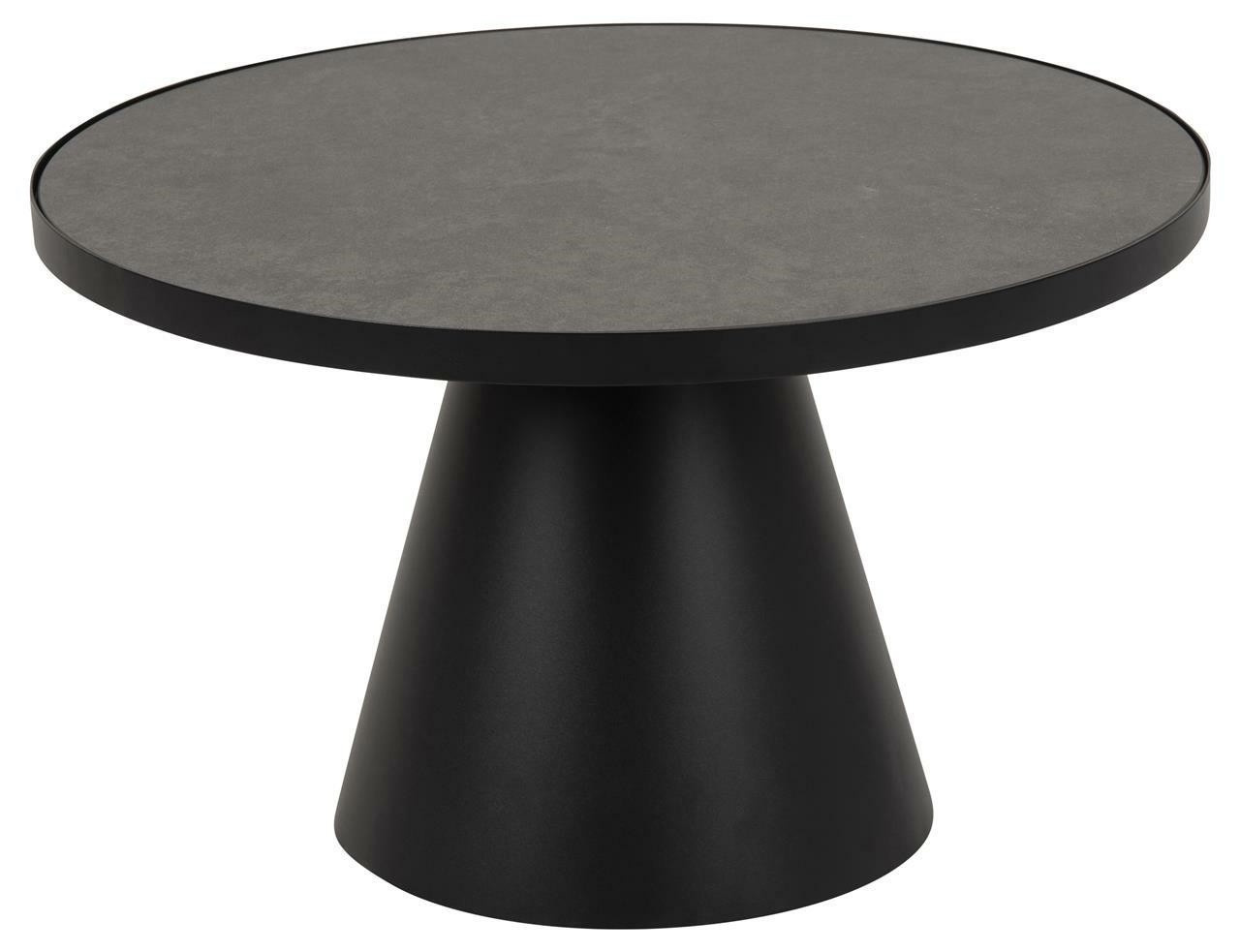 Konferenční stolek Soli je design ve stylu Art deco. Efektní a geometrický tvar stolku se osvědčí i v malém obývacím pokoji. Kulatá deska je vyrobena z keramiky a skla v šedé barvě a spočívá na černé rozšiřující se základně s matným povrchem. Díky tomu máme jistotu, že se jedná o odolný konferenční stolek, který nám bude sloužit dlouhá léta. Soli se hodí do moderního i loftového interiéru. Zajisté vytvoří také zajímavý podklad pod květináče s květinami. Univerzální barva a tvar zajišťují, že tento konferenční stolek se stejně dobře hodí do minimalistického stylu. Bude vypadat skvěle v obývacím pokoji s velkým množstvím květin. Hmotnost stolku: 38 kg Rozměry kartonů: první: 8,5x108x100 cm, druhý: 92x92x3,6 cm a třetí: 47x47x42,5 cm