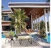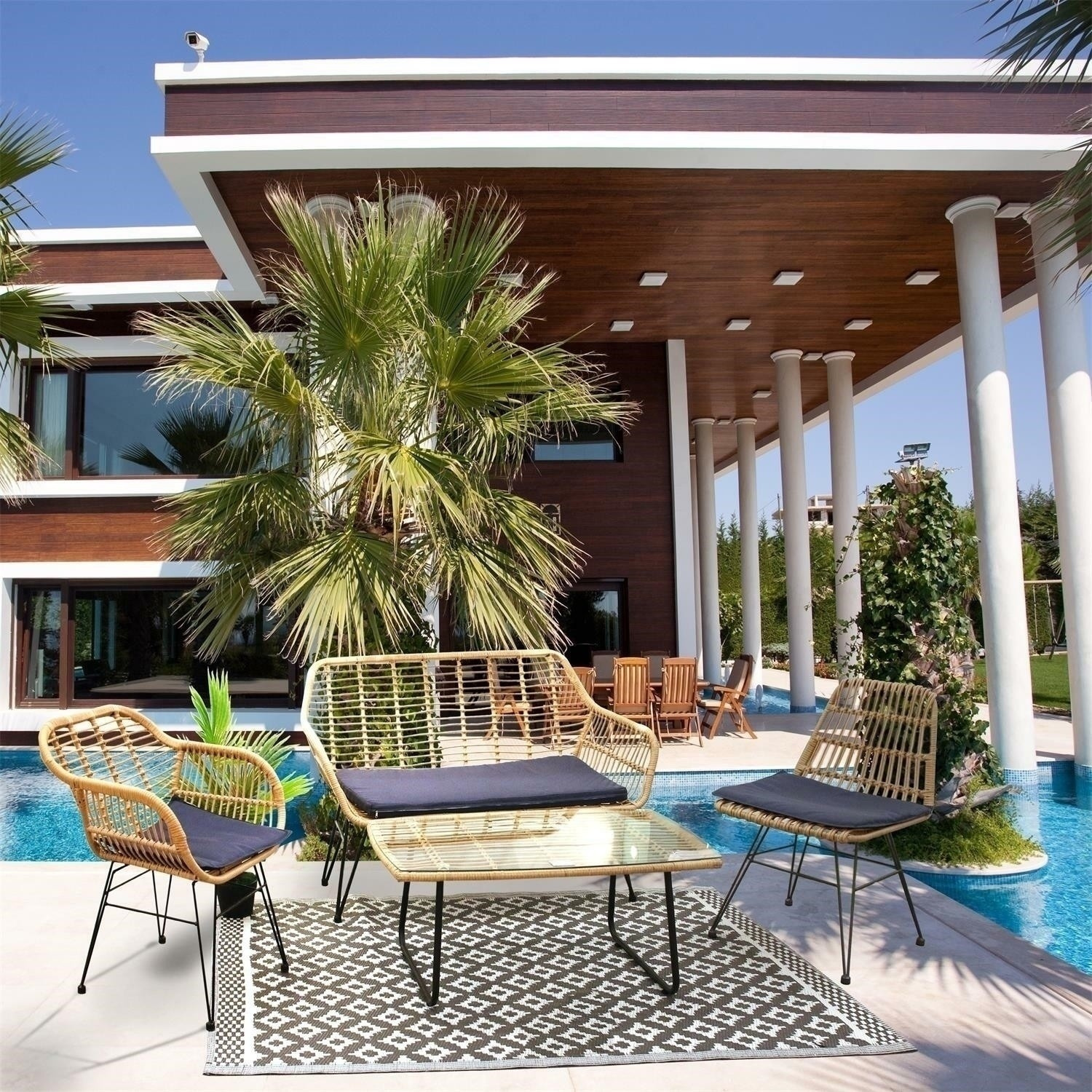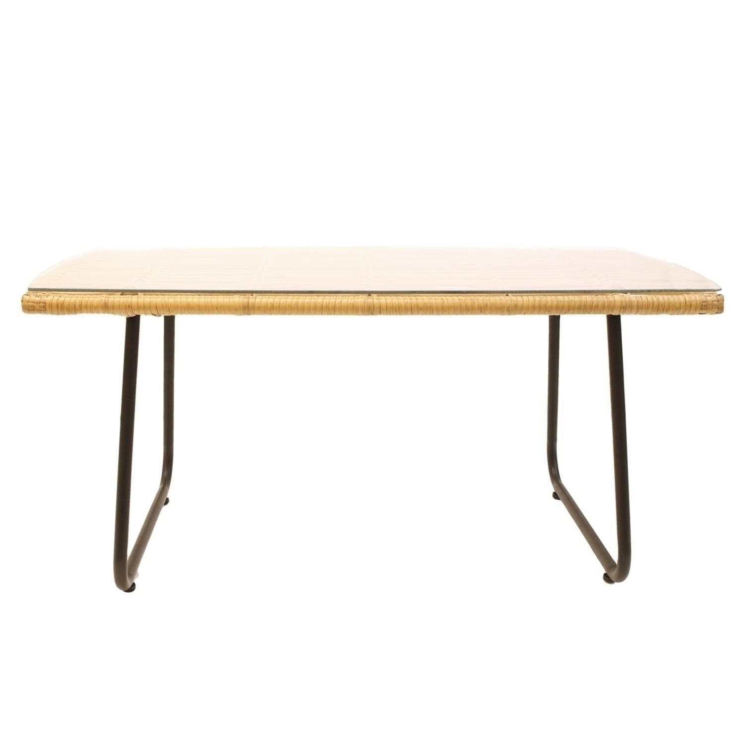 Deska stolu Surabaya je vyrobena z tvrzeného skla a plastu, který fantasticky kontrastuje s kovovým rámem a policí. Základnu tvoří ocelové nohy ve tvaru lyžin a v černé barvě - použití metody práškového lakování zajišťuje, že povrch je hladký a jednotný. Nohy stolu byly vybaveny protiskluzovými koncovkami. Stolek je vhodný pro použití uvnitř i venku. Hmotnost: 9,7 kg Rozměry balení 48x59x80 cm