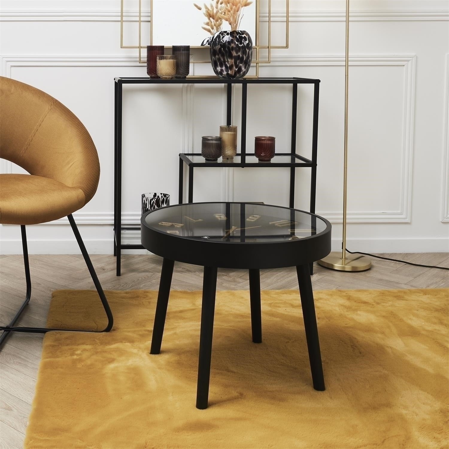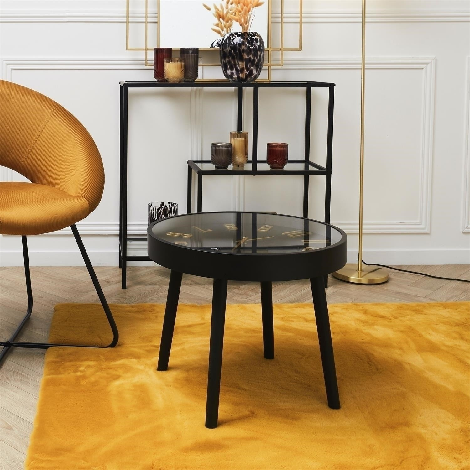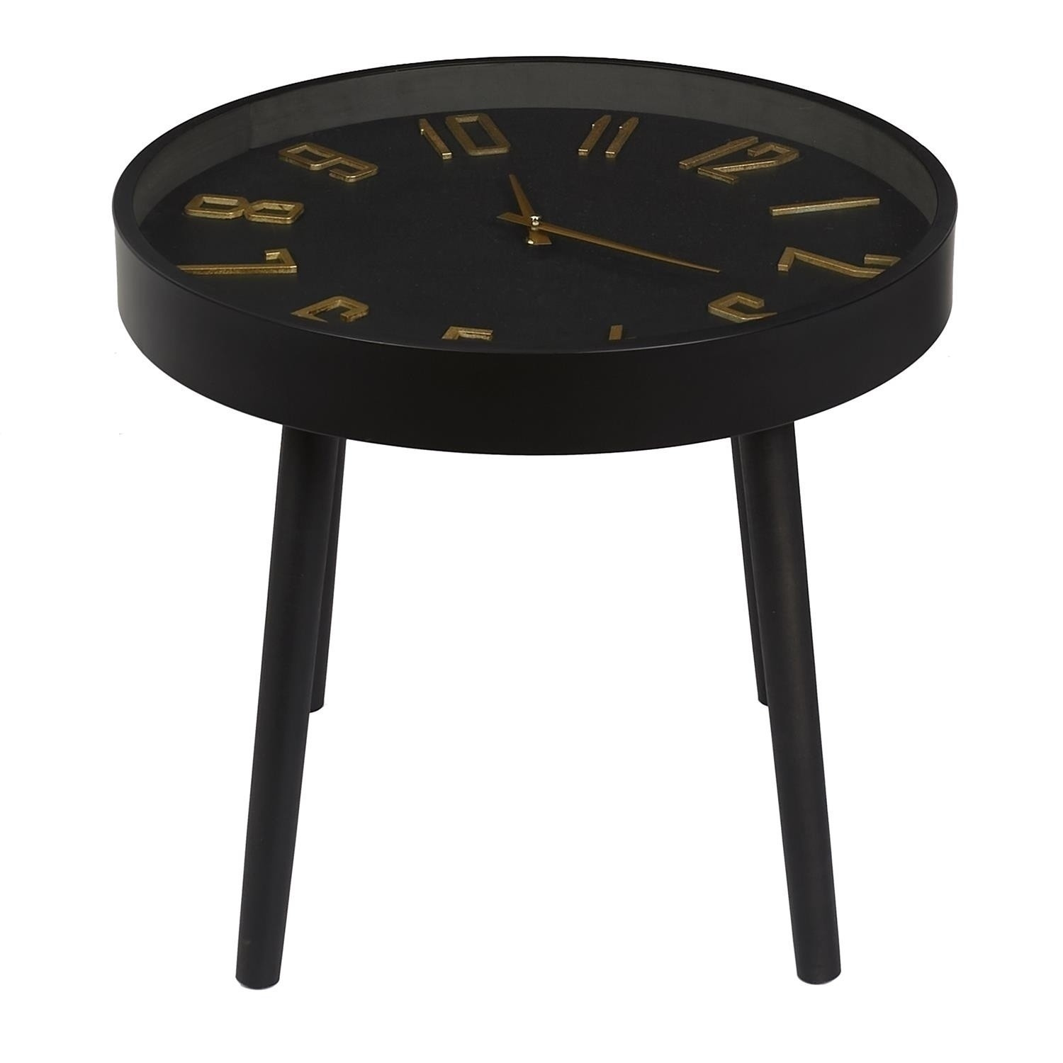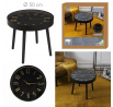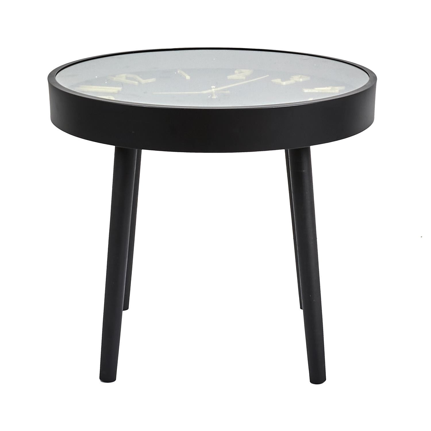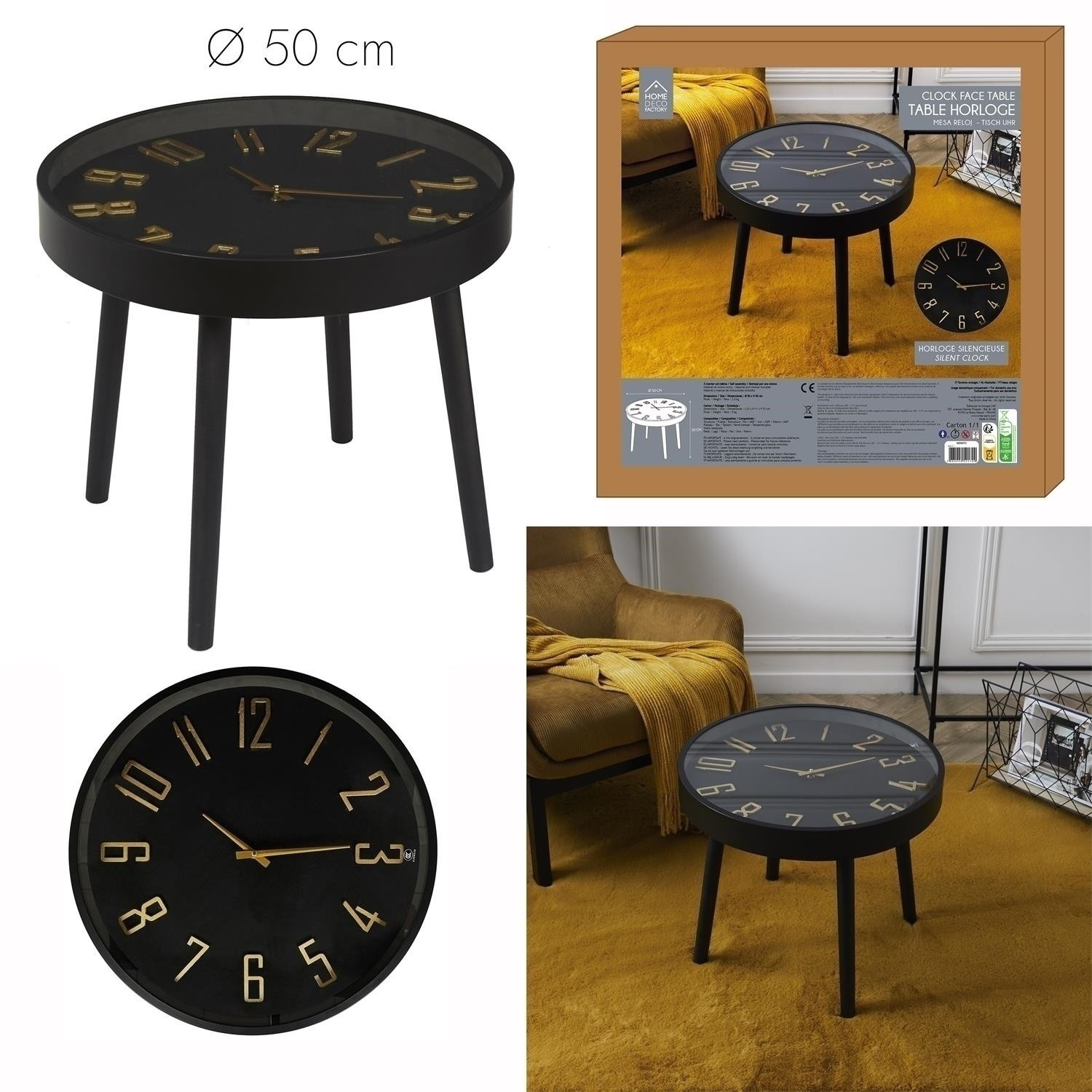 Kulatý stolek, jehož deskou je ciferník hodin, je jak elegantní, tak i neobvyklý kus nábytku. Černý stolek byl vyroben z dřevěných, borovicových nohou, kovového rámu desky a skleněné desky, pod kterou je ciferník hodin. Samotný terč je kombinací desky MDF a kovových ručiček. Na baterie (není součástí balení): R6-AA Vyžaduje montáž (přišroubování nohou k desce) Rozměry kartonu: 52x52x12 cm, Hmotnost: 5 kg