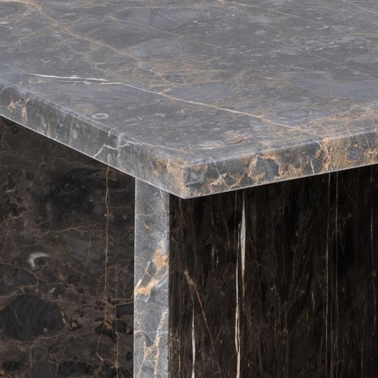 Tento konferenční stolek vnese do obývacího pokoje nadčasovou eleganci. Čtvercová deska a základna ve tvaru písmene V dodávají místnosti výjimečný charakter. Vyrobený z hnědého mramoru se světlými žilkami, kámen se přirozeně liší barvou, strukturou a povrchem, díky čemuž je každý kus jedinečný. Je to druh výrazného prvku, který zůstává aktuální bez ohledu na trendy. Hlavní vlastnosti: Sochařský konferenční stolek přinese do obývacího pokoje sofistikovanost. Čtvercová deska a základna ve tvaru písmene V zajišťují moderní vzhled. Vyrobeno z hnědého tureckého mramoru se světlými žilkami. Kámen se přirozeně liší barvou, strukturou a povrchem, takže každý kus je jedinečný. Matná, lakovaná úprava zdůrazňuje krásu materiálu Počet kartonů: 2 Rozměry kartonů: 14x100x114cm 56x81x61cm Hmotnost kartonů: 55kg 57kg