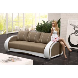 Cherry je moderní pohovka se snadným rozkladem pomocí automatu a úložným prostorem. Pohodlné sezení Vám zajistí kombinace pružin faliste a bonell s kvalitní PUR pěnou. Jednoduchým rozkladem pomocí automatu vznikne lůžko vhodné k příležitostnému spaní. Pohovku nabízíme v kvalitní potahové látce v kombinaci s bílou eko kůží, a to v několika barevných provedeních, které také naleznete v naší nabídce. V ceně pohovky jsou 3 velké opěrné polštáře. Ostatní vyobrazené dekorace nejsou v ceně.