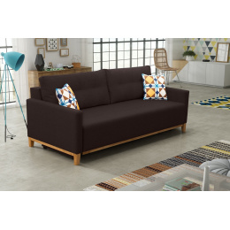 Pohovka Aristo ve skandinávském designu zaujme především svým jednoduchým a funkčním zpracováním. Pohovka je rozkládací a samozřejmostí je i úložný prostor, který poslouží např. na lůžkoviny. Jednoduchým rozložením pomocí automatu, získáte lůžko k příležitostnému přespání Vaší návštěvy. Návod na rozložení můžete shlédnout v krátkém gifu v doplňkových fotografiích. Naleznete tam také detailní rozměry pohovky. Pohodlí při sezení zajišťuje výplň sedáku, která je složena z pružin bonell a kvalitní PUR pěny a také opěrné polštáře, které jsou odnímatelné a můžete si je přizpůsobit podle svých potřeb. Pohovku nabízíme v několika barevných provedeních. Úvodní fotografie je ilustrační, vzorek látky, ve které bude pohovka dodána, je vyobrazen v doplňkových fotografiích. Moření dřeva není možno zvolit. V ceně pohovky jsou 2 malé vzorované polštářky, které jsou vyobrazené na fotografii. Ostatní vyobrazené doplňky a dekorace nejsou v ceně.