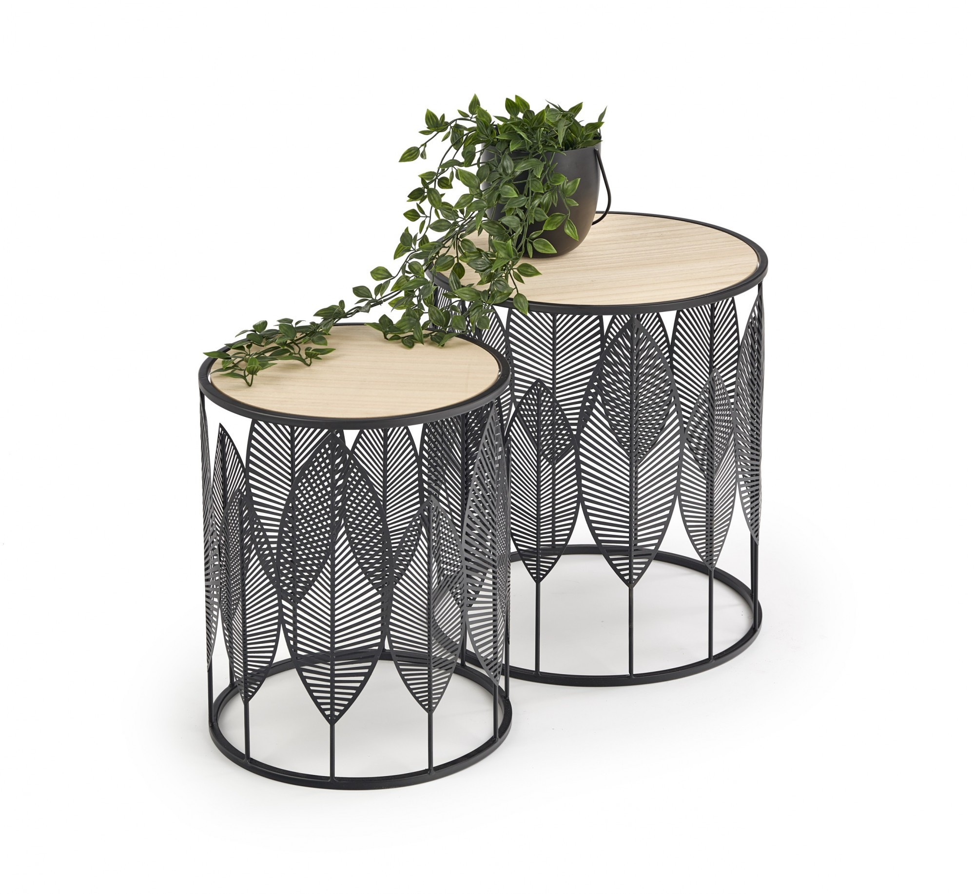 Rozměry: 40/45 cm a 33/40 cm, Materiál: MDF dýha / práškově lakovaná ocel, Barva: přírodní - černá.