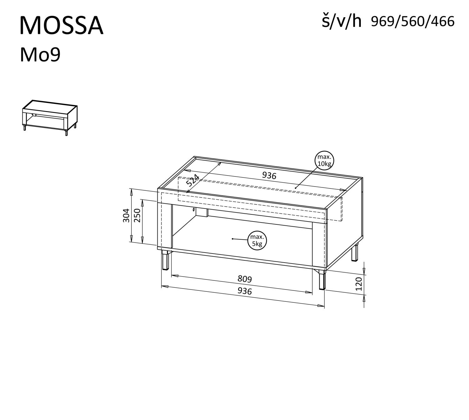 - K Vitríně MOSSA M03 a komoda MOSSA M05 je možnost dokoupení LED osvětlení