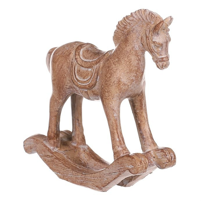 Dekorační figurka osedlaného houpacího koně z polyresinu je krásným až nostalgickým předmětem, který zvěčňuje vzpomínky na nezapomenutelné chvíle dětství. Prostoru dodá jedinečnou atmosféru vzpomínek a retro kouzla. Tato dekorace na postavení je nejen originálním doplňkem, ale i cestou zpět do doby, kdy jsme se my sami houpali s úsměvem na tváři. Je vyroben z odolného polyresinu a je skutečným symbolem minulosti a tím připomínkou časů, které nám zůstaly v srdci. Vdechněte svému prostoru trochu nostalgického šarmu a přiveďte do něj kousek dětství a bezstarostnosti.
