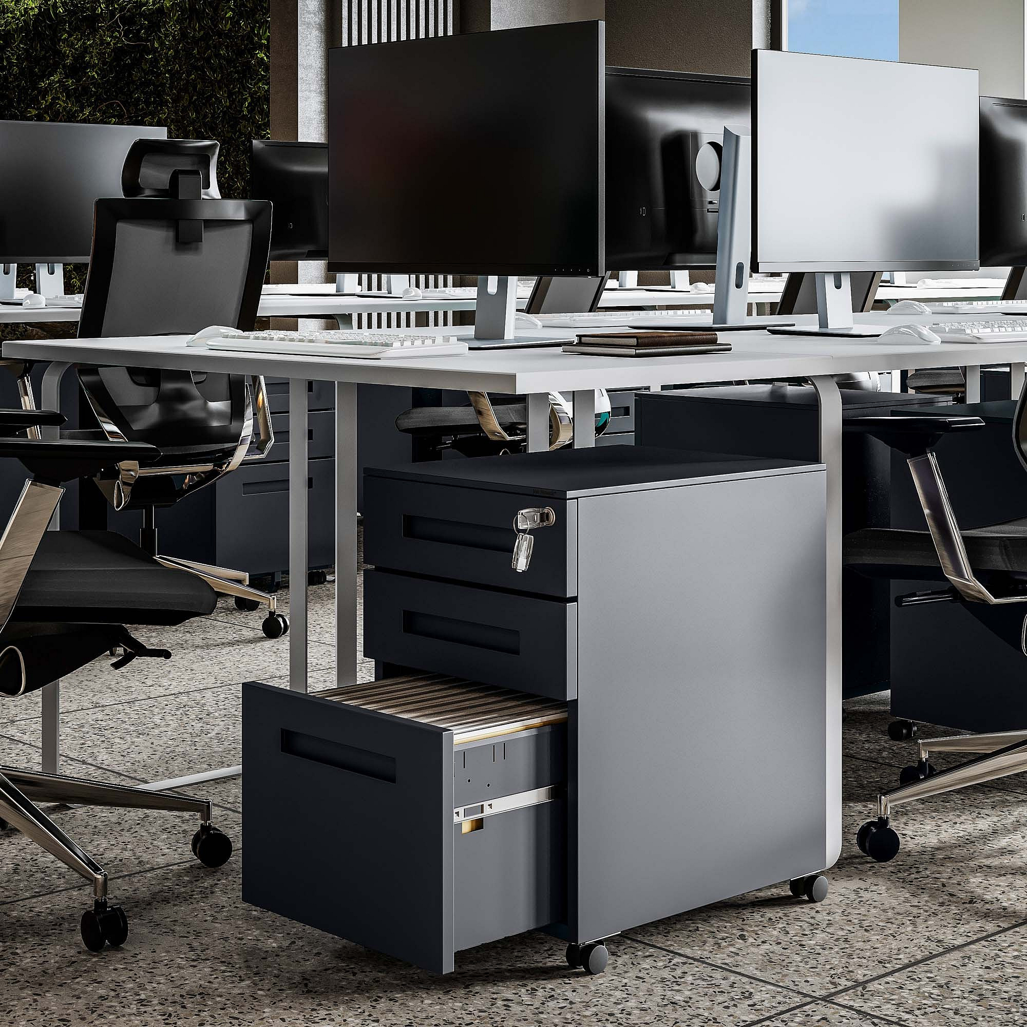 Už vás nebaví nepořádek na pracovním stole a hledáte elegantní a praktické řešení pro uspořádání vašich dokumentů a kancelářských potřeb? Představujeme vám antracitový kontejner pod stůl KATE, který je navržen tak, aby maximalizoval využití prostoru a zároveň dodal vašemu pracovnímu prostředí moderní a profesionální vzhled.