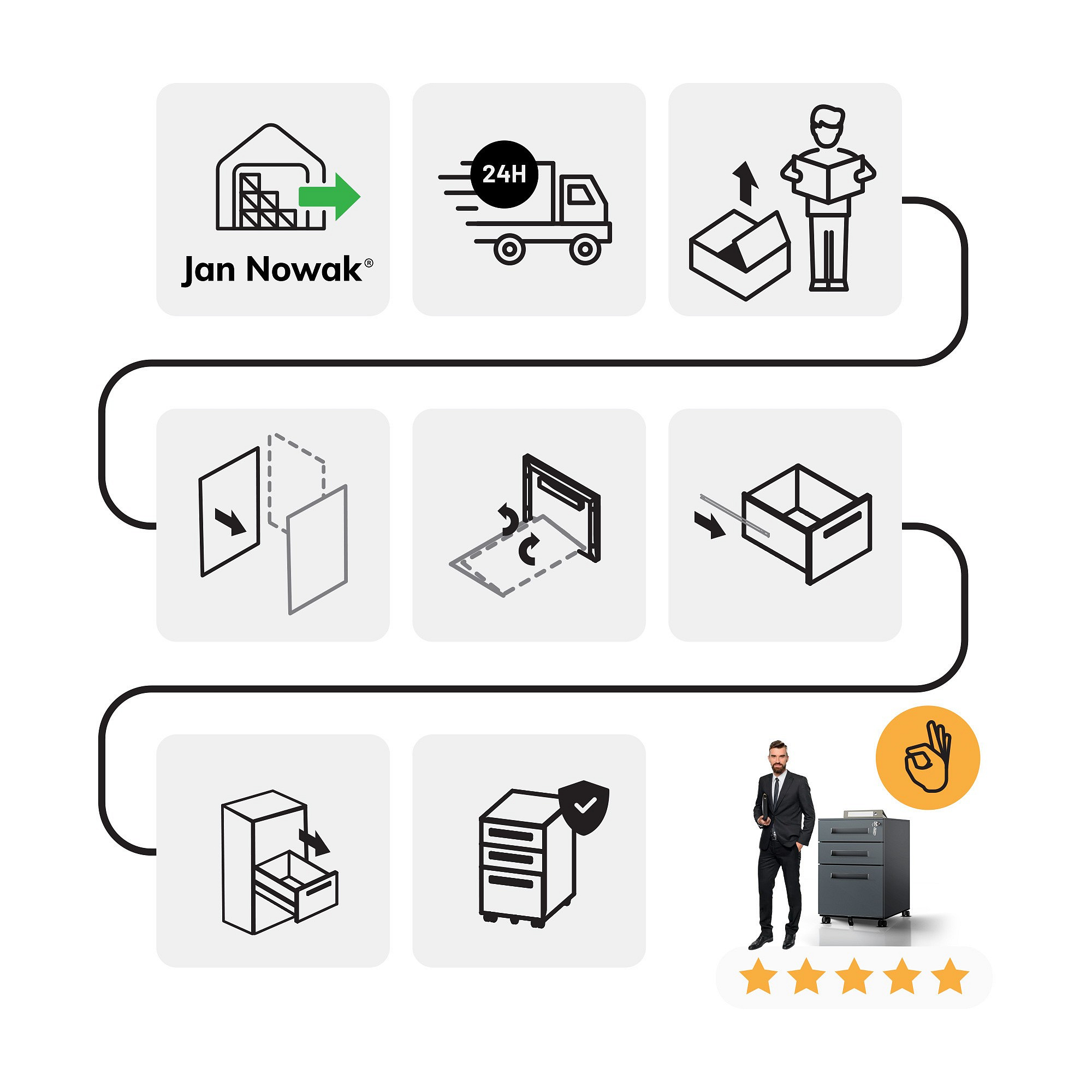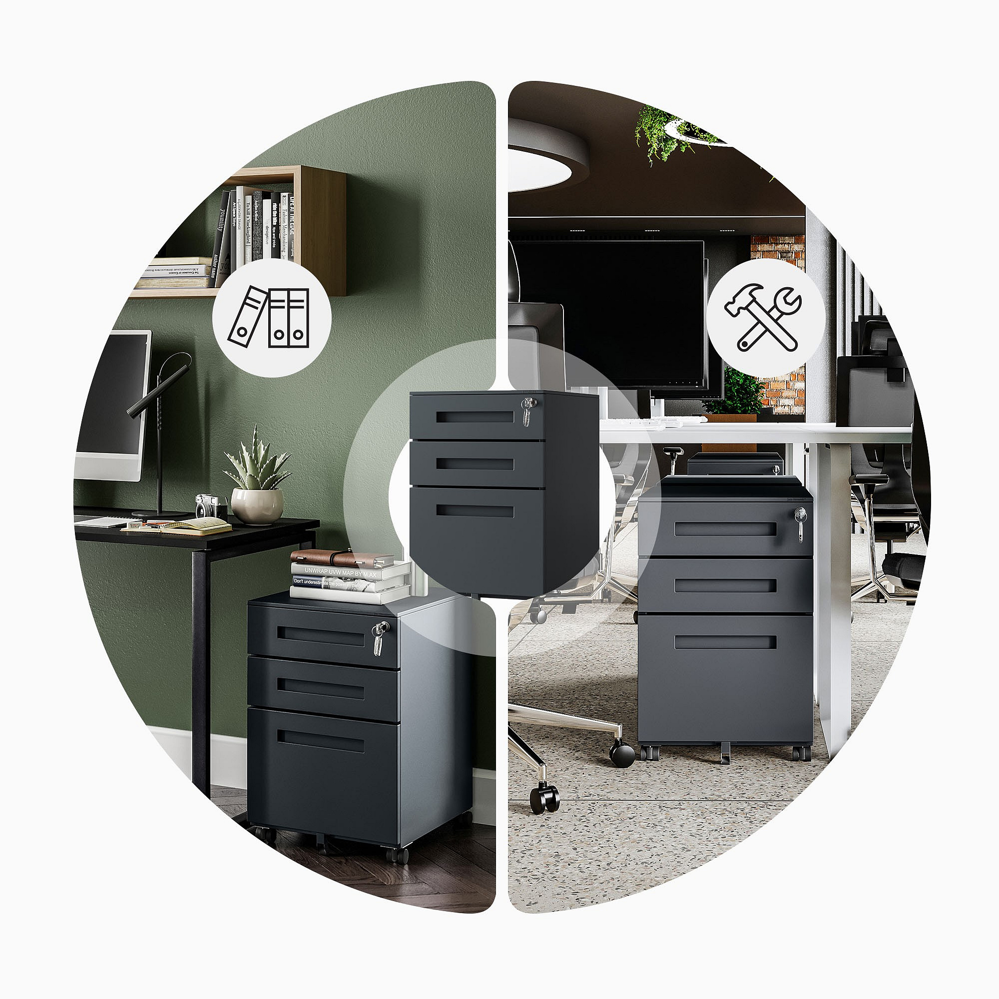 • Úspora místa: Kompaktní design umožňuje maximální využití prostoru v kanceláři nebo domácí pracovně.