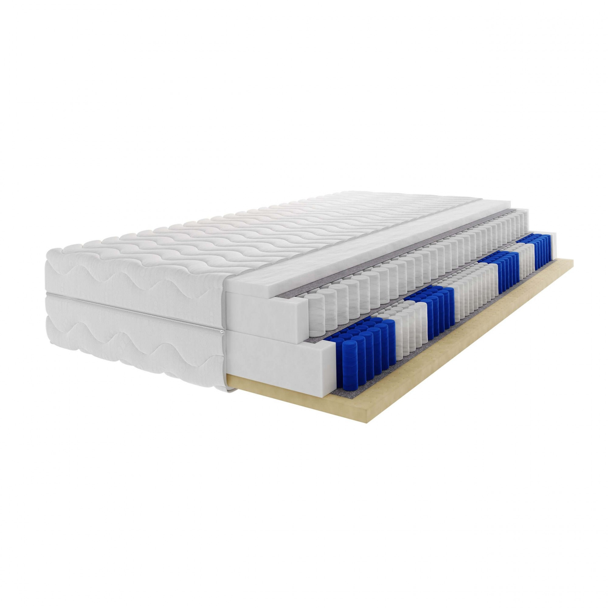 Tato matrace kombinuje několik vrstev, které se vzájemně doplňují a vytvářejí dokonalou oporu pro vaše tělo. Základ tvoří robustní boxspringová konstrukce, která zajišťuje optimální rozložení váhy a stabilitu matrace. Na boxspringu je umístěna hlavní matrace s jádrem z kvalitních pružin, které se individuálně přizpůsobují tvaru vašeho těla a poskytují mu potřebnou oporu v každé poloze. Vrchní vrstvu tvoří topper, tenká matrace z paměťové pěny, která zvyšuje komfort a eliminuje tlakové body.