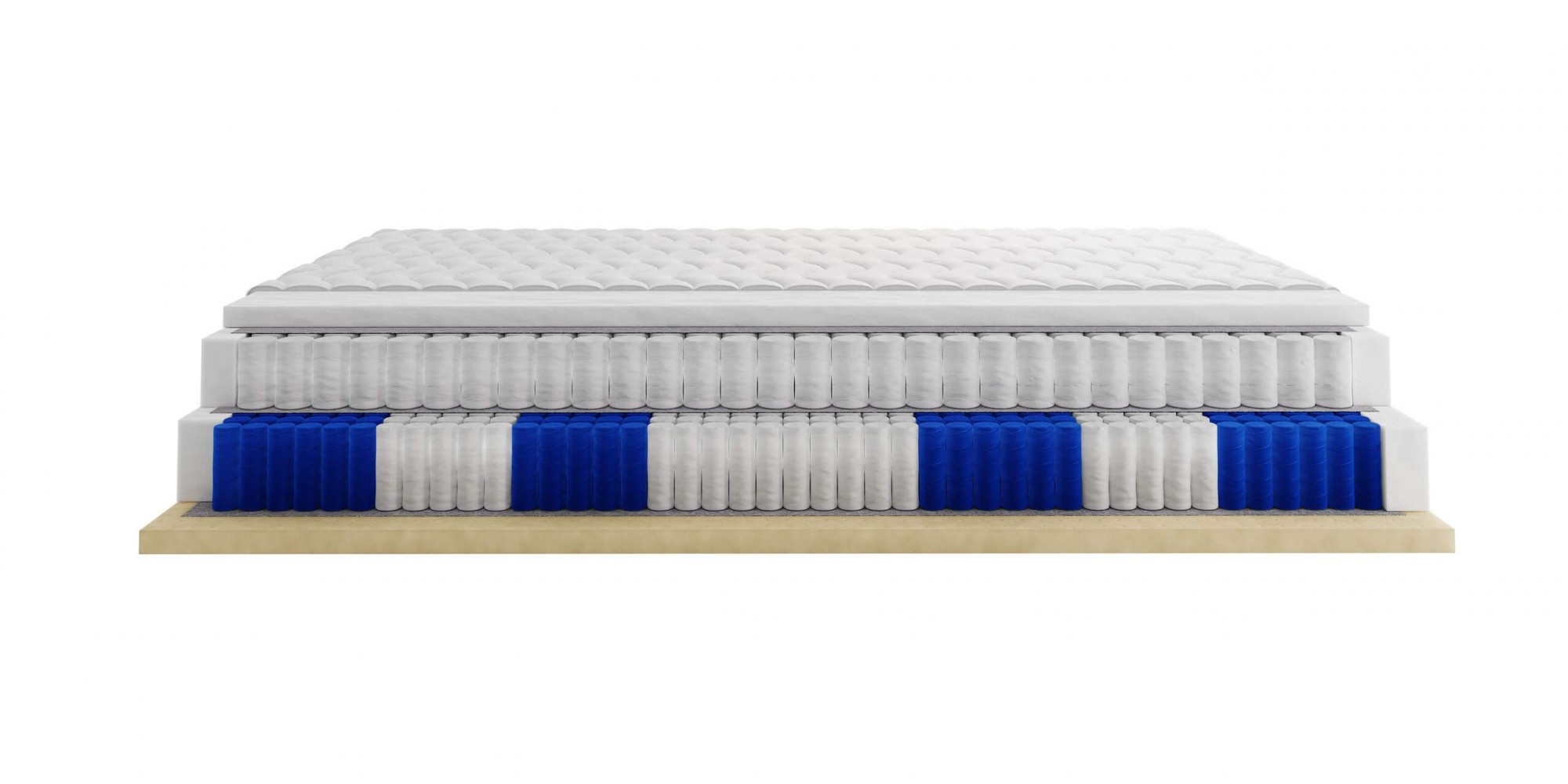 - Spodní matrace: Pružinová matrace (např. Bonell nebo taštičkové pružiny) zajišťuje základní oporu a rozložení váhy.