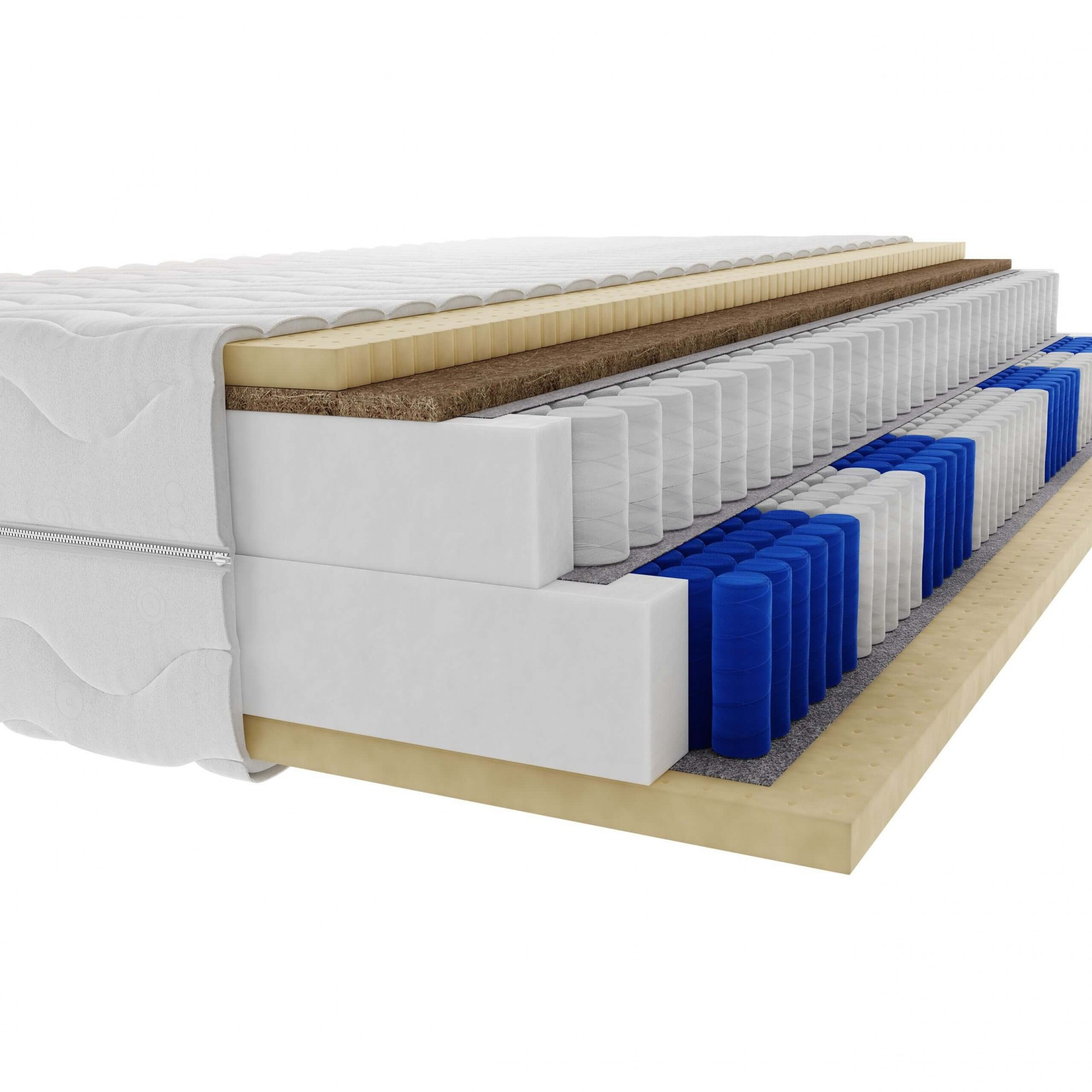 Kontinentální matrace MINT se skládá z několika vrstev, které se vzájemně doplňují a vytvářejí optimální podmínky pro spánek. Základem je robustní pružinové jádro, které poskytuje pevnou oporu a rovnoměrně rozkládá váhu těla. Na pružinovém jádru je umístěna vrstva kvalitní pěny, která se přizpůsobí vašim tělesným křivkám a zajistí maximální pohodlí. Vrchní vrstva matrace je tvořena topperem, který zvyšuje komfort a prodlužuje životnost matrace.
