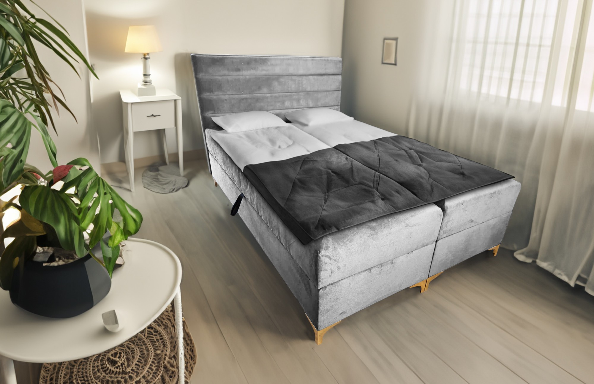 - Spodní boxspring: Pevný základ postele, který zajišťuje stabilitu a optimální rozložení váhy. Boxspring je tvořen kvalitním rámem a pružinovým jádrem, které tlumí pohyby a prodlužuje životnost matrace.