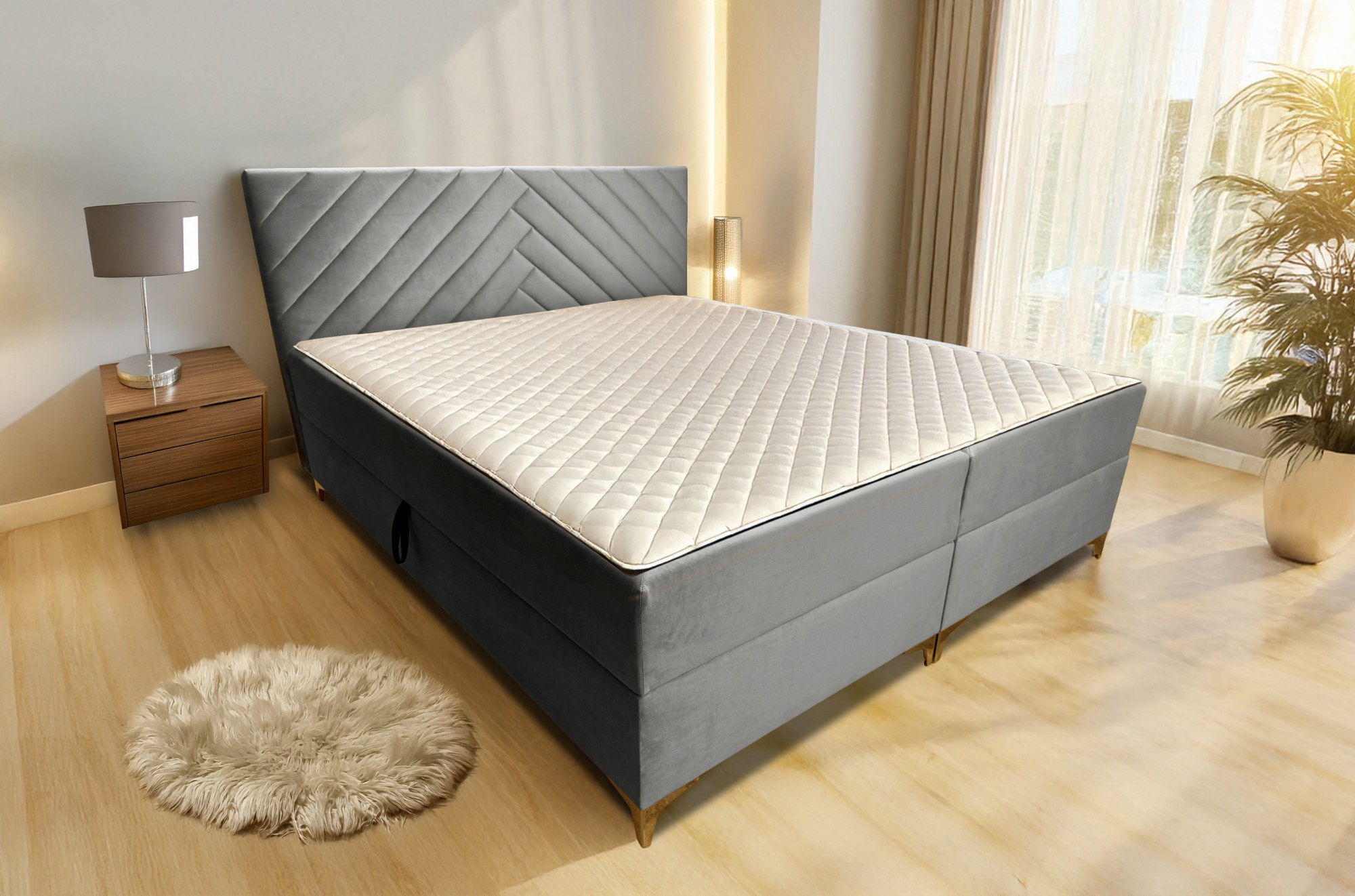 - Spodní matrace (boxspring): Pružinová matrace, která tvoří základ postele a poskytuje optimální oporu.