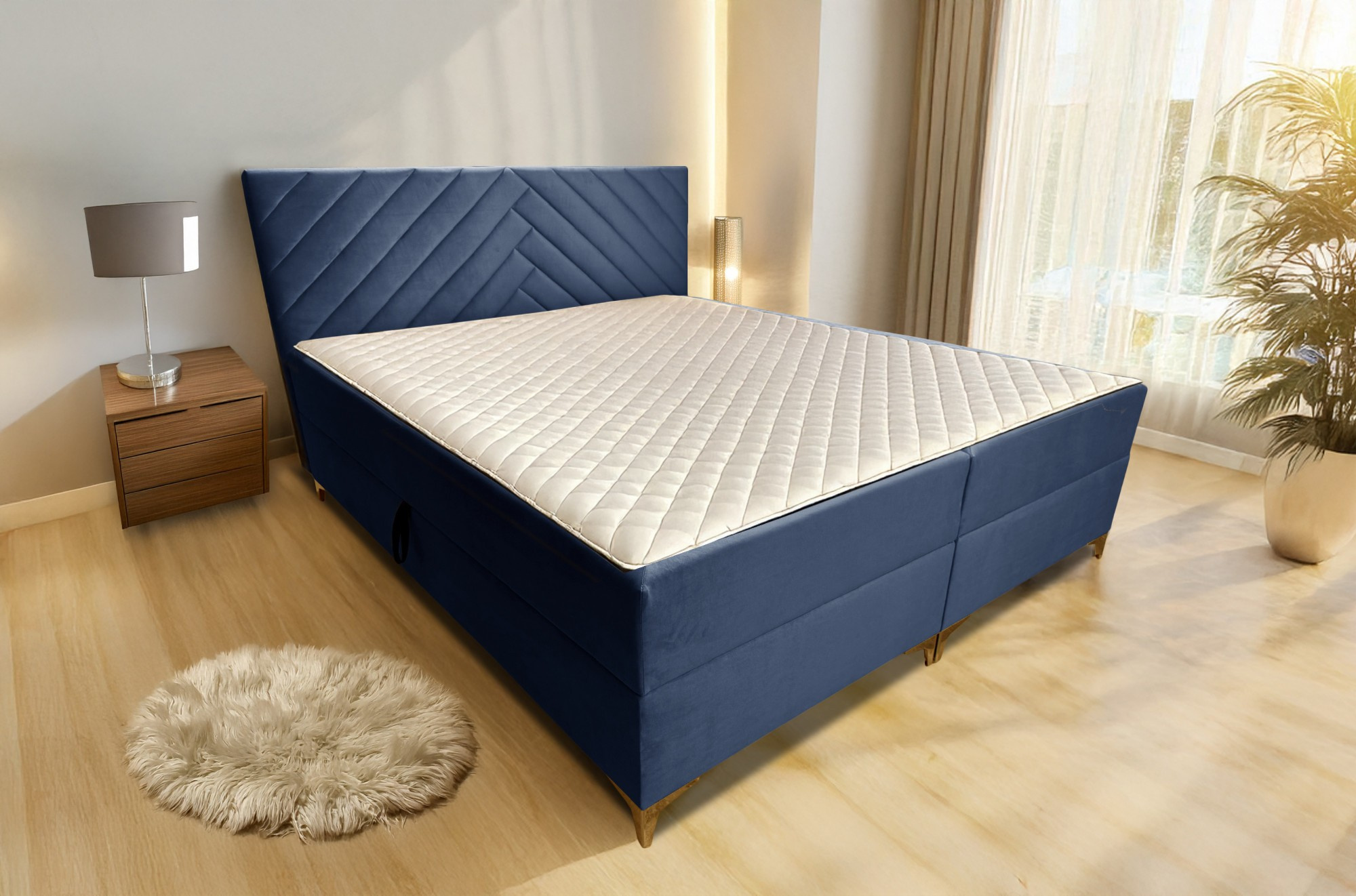 Základem postele Carlos je robustní rám z masivního dřeva, který zaručuje stabilitu a dlouhou životnost. Na rámu je umístěna spodní pružinová matrace (boxspring), která tvoří první vrstvu odpružení. Tato vrstva absorbuje pohyby a vibrace, čímž minimalizuje rušení spánku partnera.