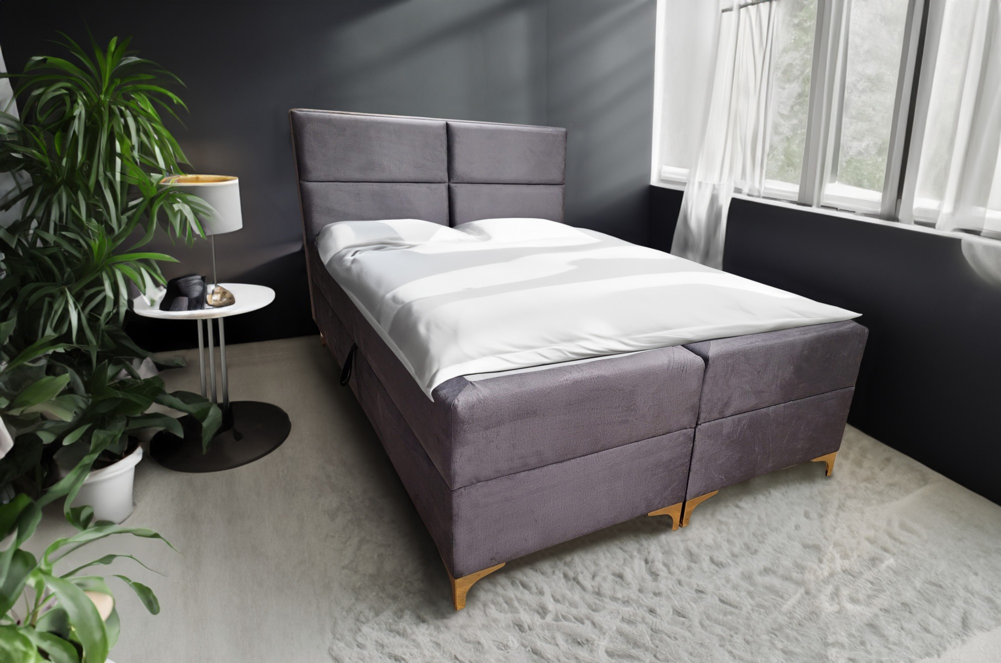 - Spodní boxspring: Pevný základ postele, který zajišťuje stabilitu a optimální podporu pro matraci. Boxspring je obvykle tvořen pružinovým jádrem, které absorbuje pohyby a zvyšuje komfort.