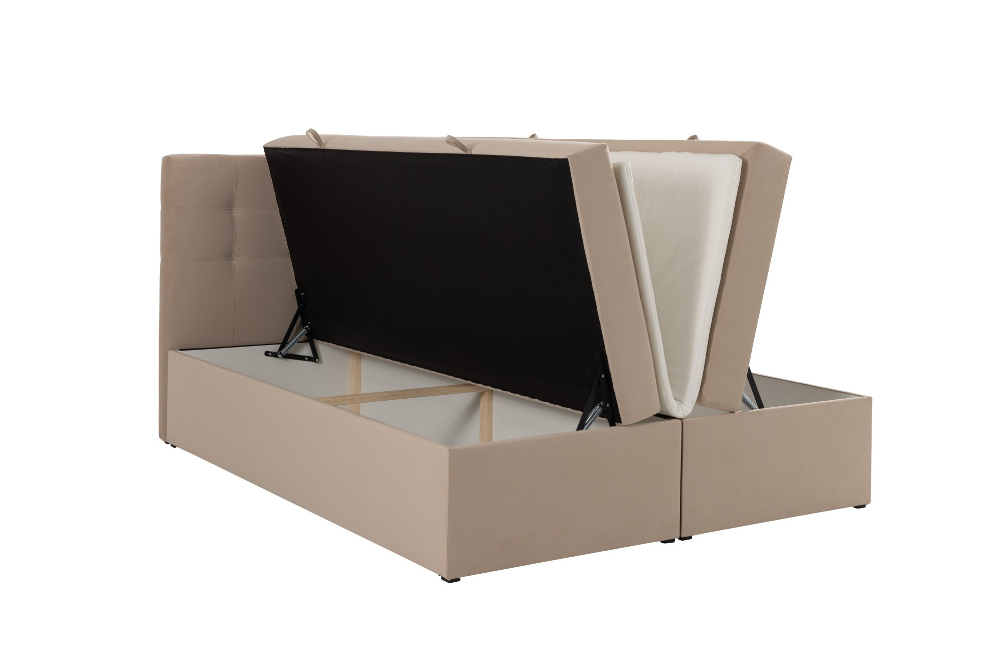 - Spodní boxspring: Pevný základ s pružinovým jádrem, který zajišťuje stabilitu a optimální podporu pro vrchní matrace.