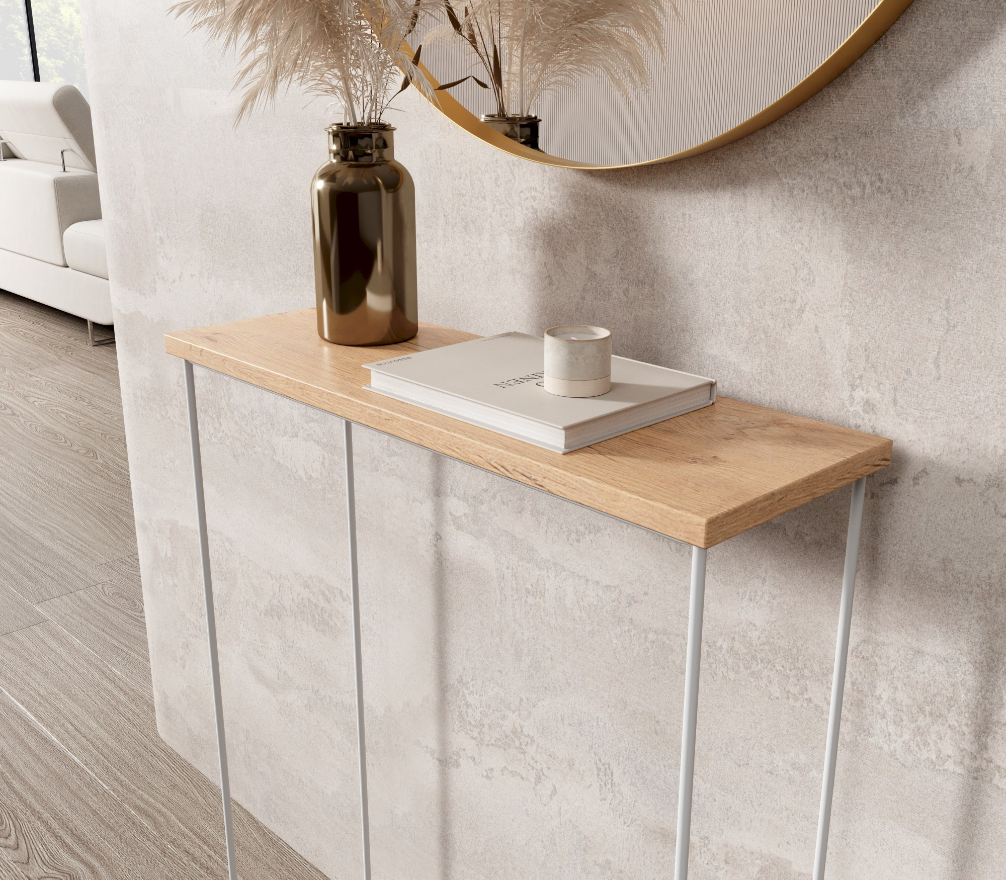Konzole Sili s nohou z drátu je skvělým doplňkem každého interiéru. Jeho univerzální design zajišťuje, že se hodí jak do moderních, tak i do více klasických aranžmá. Může sloužit jako praktický prostor v předsíni, elegantní doplněk v obývacím pokoji nebo stylové pracovní místo v kanceláři.