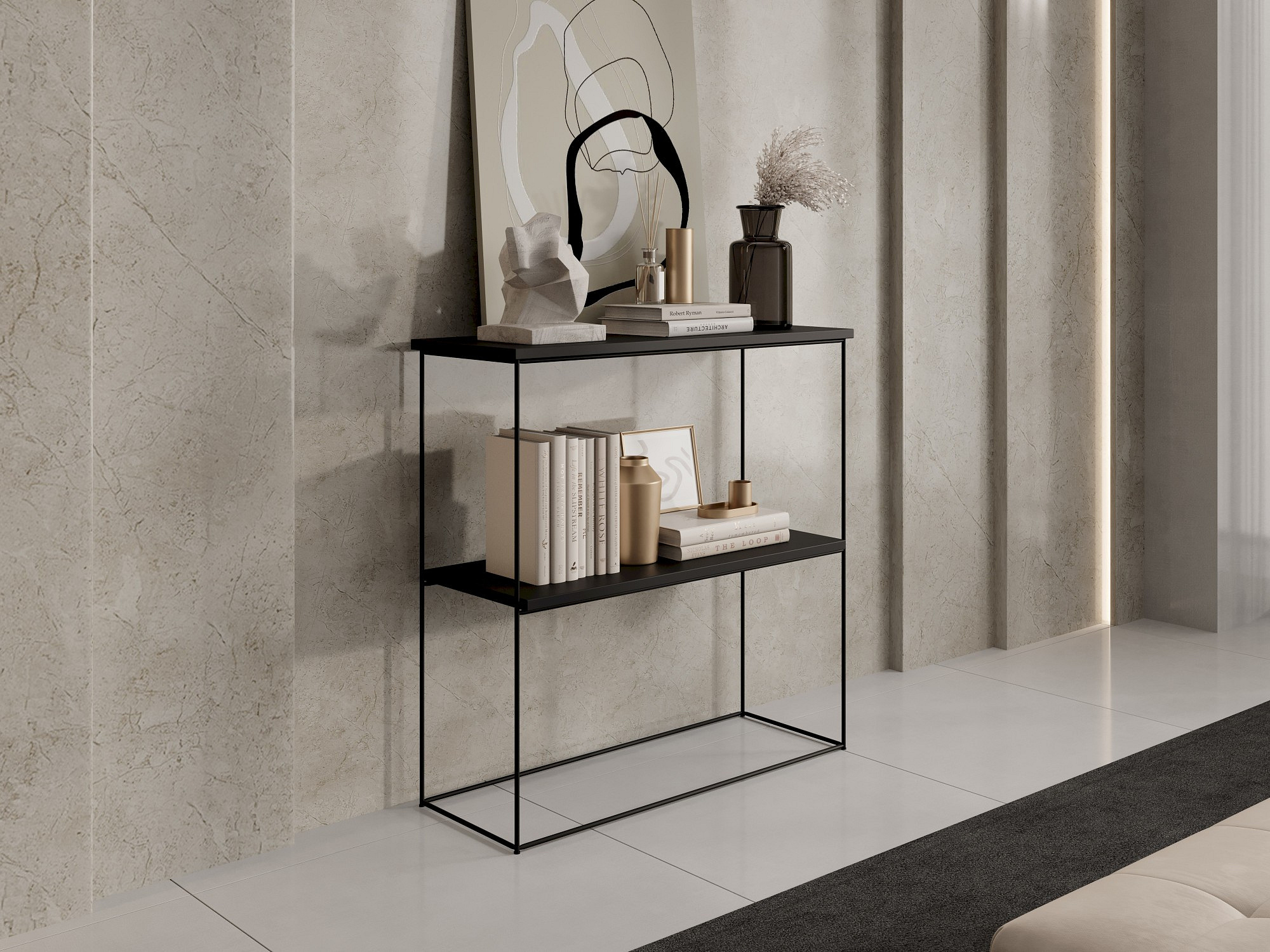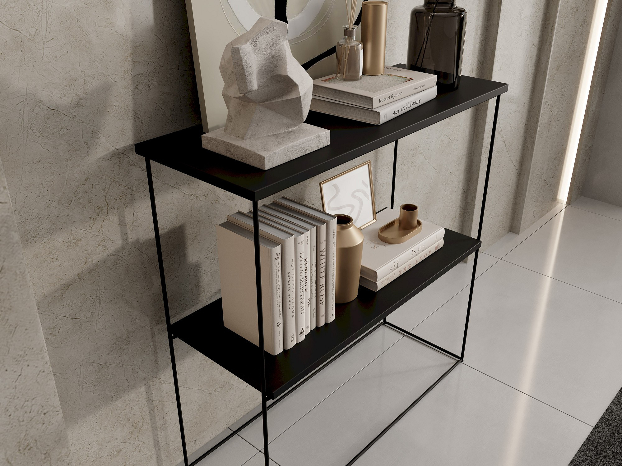 Konzole Toni je elegantní a moderní nábytek, který se dokonale hodí do různorodých interiérů, od minimalistických po více eklektické. Charakteristickým prvkem této konzole je noha vyrobená z drátu, která jí dodává lehkost a moderní vzhled. Prostá forma blatu ideálně harmonizuje s jemným tvarem kovové základny, tvořící harmonický celek.