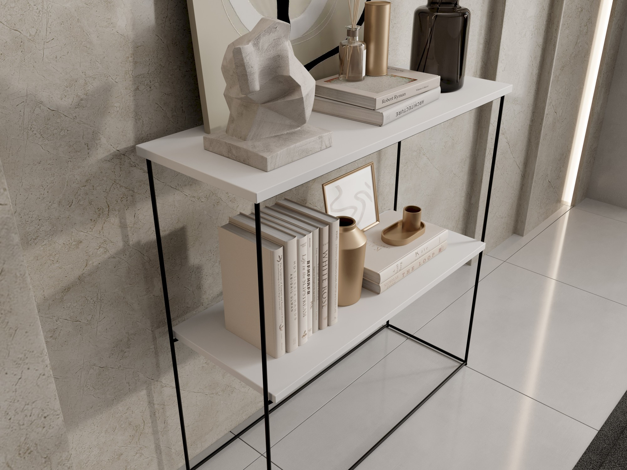 Konzole Toni je elegantní a moderní nábytek, který se dokonale hodí do různorodých interiérů, od minimalistických po více eklektické. Charakteristickým prvkem této konzole je noha vyrobená z drátu, která jí dodává lehkost a moderní vzhled. Prostá forma blatu ideálně harmonizuje s jemným tvarem kovové základny, tvořící harmonický celek.