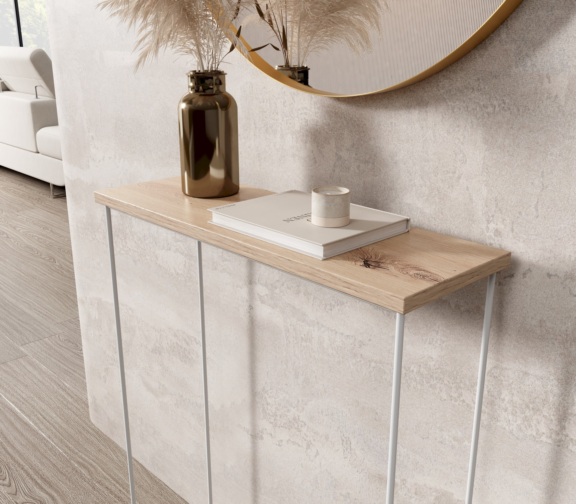 Konzole Sili s nohou z drátu je skvělým doplňkem každého interiéru. Jeho univerzální design zajišťuje, že se hodí jak do moderních, tak i do více klasických aranžmá. Může sloužit jako praktický prostor v předsíni, elegantní doplněk v obývacím pokoji nebo stylové pracovní místo v kanceláři.