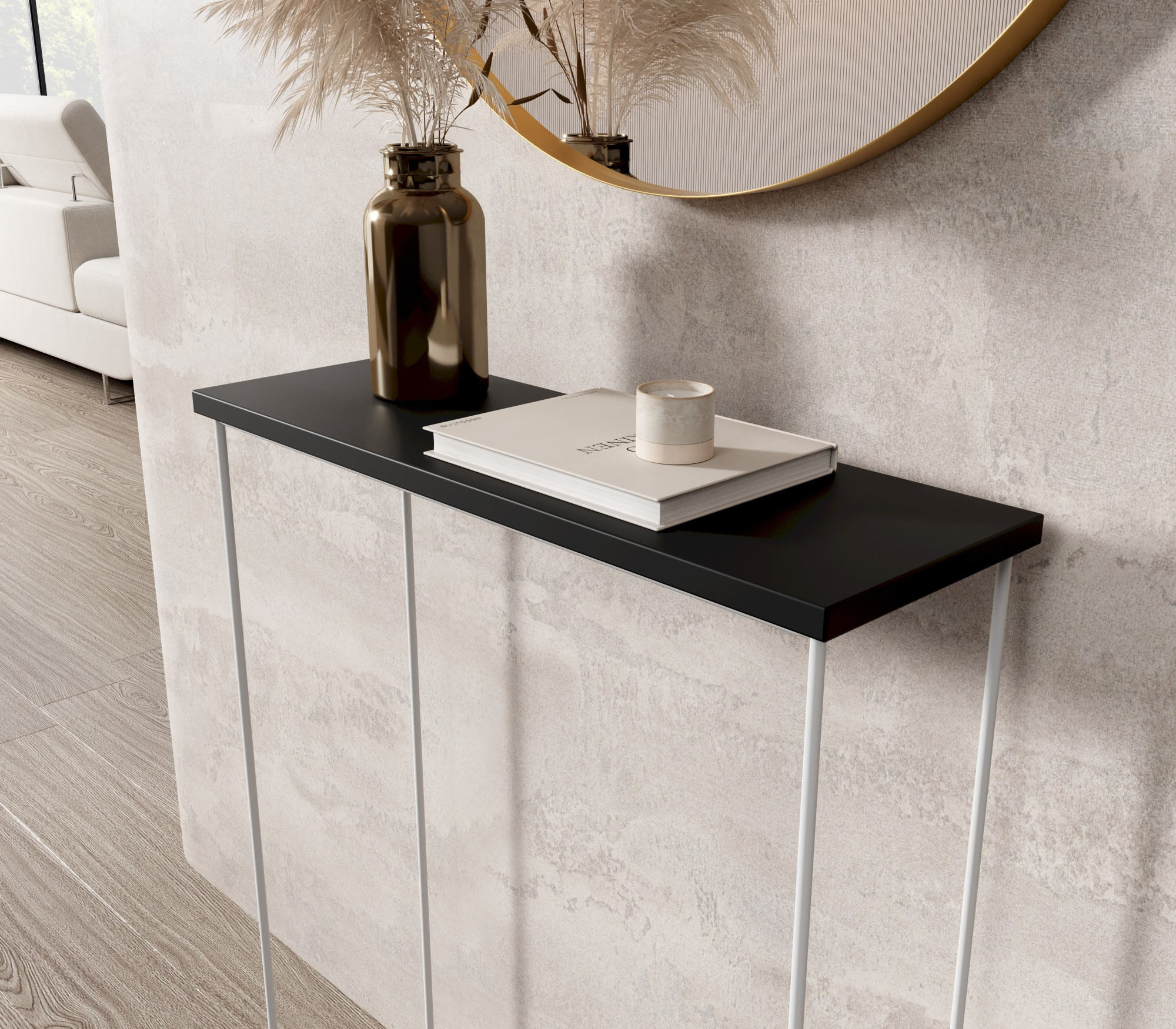 Konzole Sili s nohou z drátu je skvělým doplňkem každého interiéru. Jeho univerzální design zajišťuje, že se hodí jak do moderních, tak i do více klasických aranžmá. Může sloužit jako praktický prostor v předsíni, elegantní doplněk v obývacím pokoji nebo stylové pracovní místo v kanceláři.
