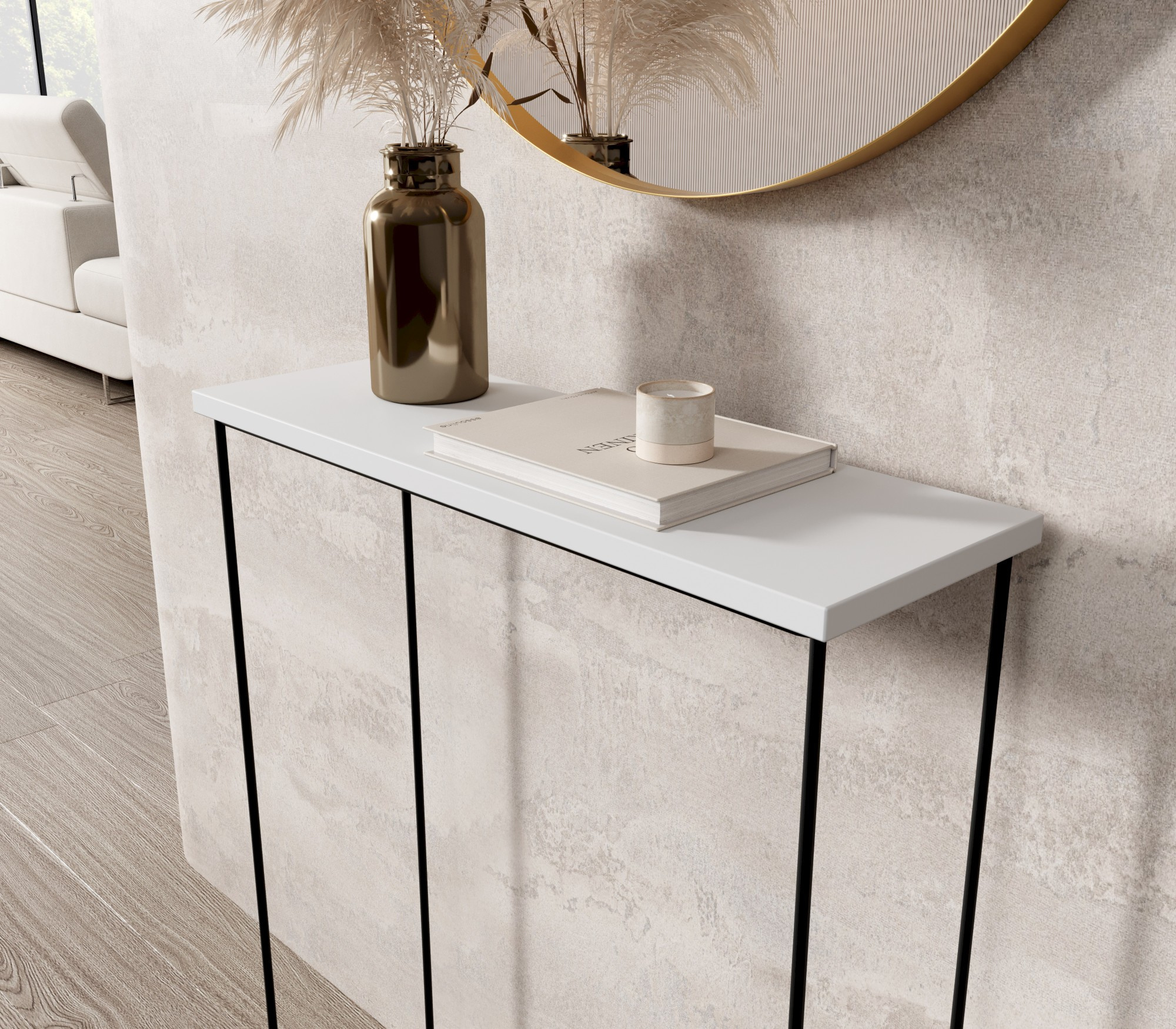 Konzole Sili s nohou z drátu je skvělým doplňkem každého interiéru. Jeho univerzální design zajišťuje, že se hodí jak do moderních, tak i do více klasických aranžmá. Může sloužit jako praktický prostor v předsíni, elegantní doplněk v obývacím pokoji nebo stylové pracovní místo v kanceláři.